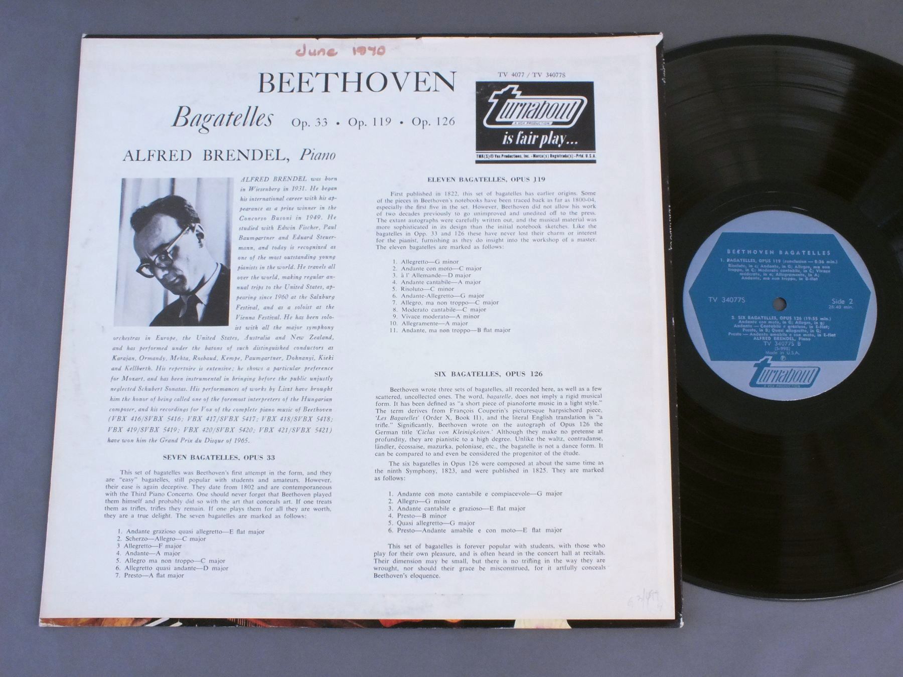 BRENDELアルフレッド・ブレンデル/BEETHOVEN BAGATELLES TV34077S 製造国:米国盤 / Media:LP外観:VG+盤の状態:EX- 価格(税込):¥1,100(売約済) 送料 7inch:定形外郵便 360円~LP:定形外郵便 660円~送料は、注文の最終画面で確認頂けます。 > > BRENDEL/BEETHOVEN BAGATELLES 外観 (VG+)特記事項:ヘリスレやレコードリングスレ有り。裏ジャケに書込み。外観VG+の共通説明:ダメージやや有り。シミ、ヨゴレ、スレなど多少~やや多め。 盤の状態 (EX-)特記事項:薄いスリキズ・細かい表面スレ軽くある感じ。全体的には殆どが軽微なものの様子です。盤EX-の共通説明:盤面のスリキズが多少有り。音に出そうなものは殆ど無いように見える~さほど気にならないぐらいの軽いプチ数カ所程度。 Tweet それぞれの画像をクリックすると、大きい写真が見られます こちらの商品もお勧めです 1,320円 YVES NAT / CHOPIN - SONATE 1,430円 ALFRED DELLER / DOWLAND-LUTE SONGS & LUTE SOLOS 1,650円 ASHKENAZY / ASHKENAZY PLAYS LISZT 990円 RICHTERリヒター / JOHANN SEBASTIAN BACH/TOCCATA UND FUGE D-MOLL BWV565 etc 990円 JULIAN BREAM / MUSIC OF SPAIN -LUTE VOL1- 990円 FRANCIS CHAPELET / SECULAR BAROQUE ORGAN MUSIC 1,430円 ESCHENBACH-FRANTZ / MOZART-SONATEN FUR ZWEI KLAVIERE 3,300円 SOLOMON / BEETHOVEN - LES QUATRE DERNIERES SONATES
