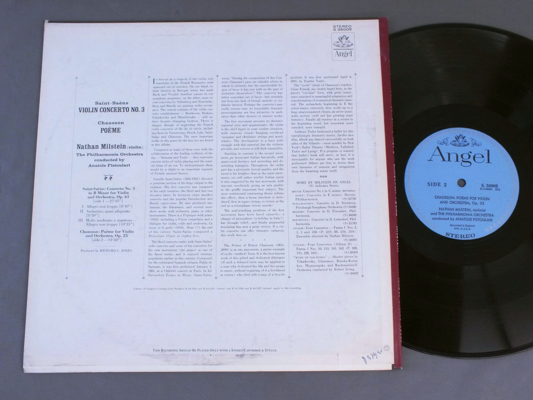 MILSTEIN FISTOULARI/SAINT-SAENS VIOLIN CONC. S36005 製造国:米国盤 / Media:LP外観:EX盤の状態:EX 価格(税込):¥1,650(売約済) 送料 7inch:定形外郵便 360円~LP:定形外郵便 660円~送料は、注文の最終画面で確認頂けます。 レコード検索 > ALL Genre > MILSTEIN FISTOULARI/SAINT-SAENS VIOLIN CONC. 外観 (EX)特記事項:裏ジャケに書込み。外観EXの共通説明:ダメージが限定的。中古品としては保存状態がよい方。シミ、ヨゴレ、スレ 少し~軽度。 盤の状態 (EX)特記事項:薄いスリキズ・スレ軽くある感じ。軽微なものの様子です。盤EXの共通説明:盤面のスリキズが薄いものが少し~軽度 音に出そうなものは無いように見える(軽微なソフトティック音は除く)。 Tweet それぞれの画像をクリックすると、大きい写真が見られます こちらの商品もお勧めです 990円 SOLTI-ERICH KLEIBER etc / PRINZREGENTENTHEATER MUNCHEN 2,750円 BOHM / MOZART-DON GIOVANNI QUERSCHNITT 2,420円 JANOS FERENCSIK / COMPLETE EDITION BARTOK BELA 990円 WALTER - COLUMBIA SYM. ORCH / BRAHMS - SYM NO1 1,650円 BEINUM / HANDEL-WATER MUSIC SUITE 990円 PAUL PARAY / SEPT MELODIES POUR SOPRANO ET ORCHESTRE 1,320円 MUNCH - BOSTON SYM. / FRANCK - SYMPHONY IN D MINOR 1,430円 G.DONIZETTI / RICHARD WAGNER-LA FAVORITE