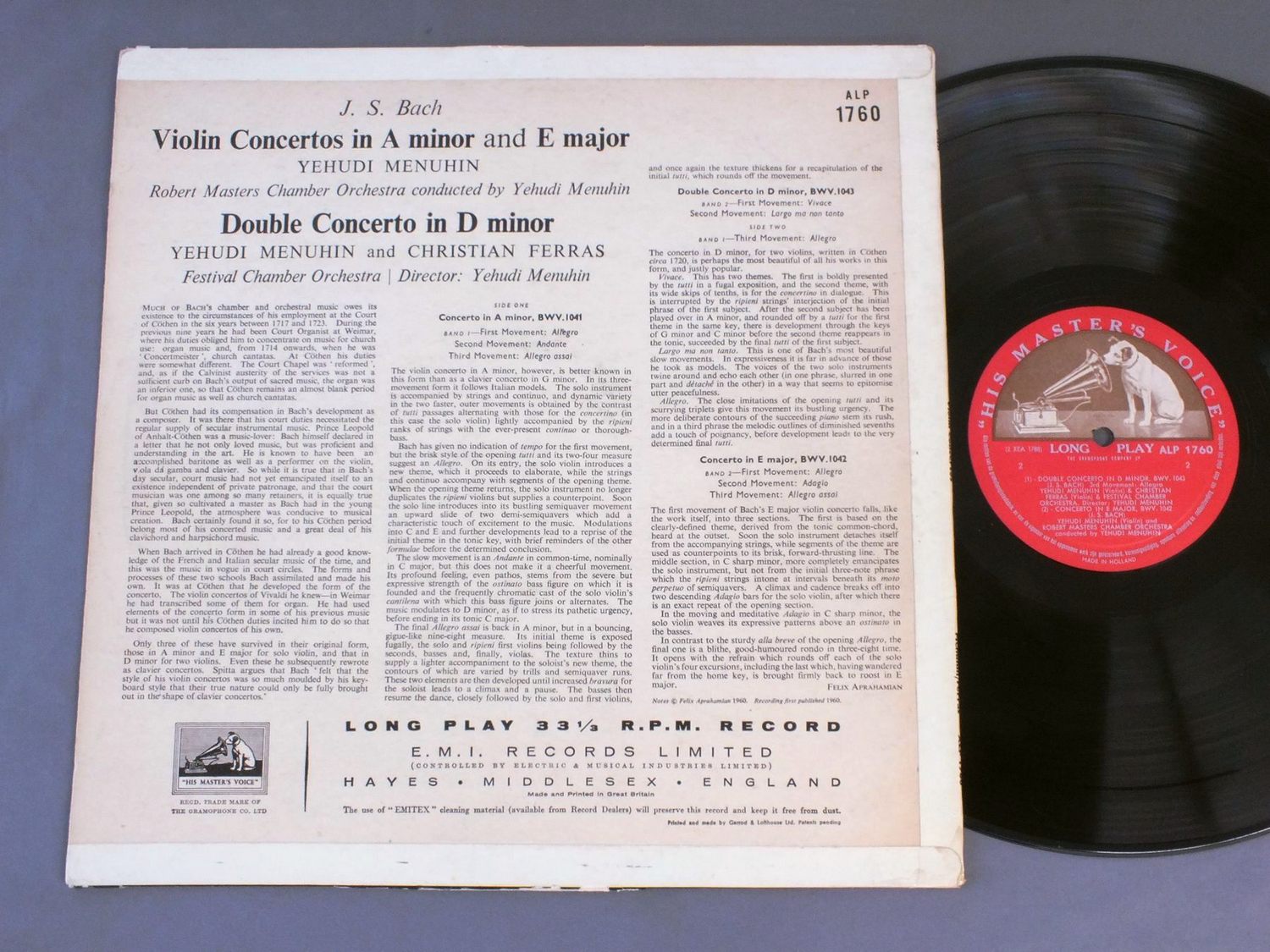 MENUHIN FERRAS/BACH VIOLIN CONC. ALP1760 製造国:英国盤 / Media:LP外観:VG+盤の状態:EX- 価格(税込):¥1,650(売約済) 送料 7inch:定形外郵便 360円~LP:定形外郵便 660円~送料は、注文の最終画面で確認頂けます。 レコード検索 > ALL Genre > MENUHIN FERRAS/BACH VIOLIN CONC. 外観 (VG+)特記事項:角スレやヘリスレ。底抜け有り。外観VG+の共通説明:ダメージやや有り。シミ、ヨゴレ、スレなど多少~やや多め。 盤の状態 (EX-)特記事項:薄いスリキズ・細かい表面スレ軽くある感じです。プチ出そうな所は少し。軽微なものが中心の様子です。盤EX-の共通説明:盤面のスリキズが多少有り。音に出そうなものは殆ど無いように見える~さほど気にならないぐらいの軽いプチ数カ所程度。 Tweet それぞれの画像をクリックすると、大きい写真が見られます こちらの商品もお勧めです 1,430円 HORENSTEIN / STRAUSS -STRAVINSKY 1,430円 MARRINER / BEETHOVEN SYM. NO4-`GROSSE FUGE` 1,430円 ANSERMET / ROUSSEL-SYM. NO3 OPUS 42&NO4 OPUS 53 1,980円 KARAJAN etc / MOZART-KONZERTE FUR BLASER- 990円 JOSEF KRIPS / SCHUBERT-SYM. NO9 GREAT 2,200円 KARAJAN / BRUCKNER SYM. NO4 990円 WALTER - COLUMBIA SYM. ORCH / BRAHMS - SYM NO1 1,430円 MONTEUX / CHAUSSON-MONTEUX