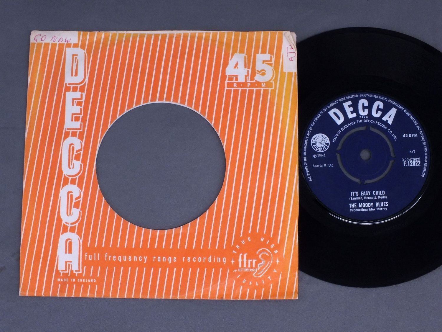 MOODY BLUES/GO NOW F12022 製造国:英国盤 / Media:7inchMatrix:T1-1T T1-1T外観:EX-盤の状態:EX- 価格(税込):¥2,200(売約済) 送料 7inch:定形外郵便 360円~LP:定形外郵便 660円~送料は、注文の最終画面で確認頂けます。 > > MOODY BLUES/GO NOW 外観 (EX-)特記事項:DECCAのオレンジのカンパニースリーブ付き。ヨレや日焼け退色多少有り。剥がれも一部あり。書込み有りますがタイトル曲のものですのでオリジナル付属のものとも考えられます。抜けは有りません。外観EX-の共通説明:ダメージ軽度~多少。 中古品としては普通の状態。シミ、ヨゴレ、スレなど軽く~多少。 盤の状態 (EX-)特記事項:薄いスリキズ・スレ軽くある感じ。ほとんどが軽微なものの様子で、なかなかきれいな印象です。冒頭聴いてみましたが、チリプチ経度で音もとてもクリアーです。盤EX-の共通説明:盤面のスリキズが多少有り。音に出そうなものは殆ど無いように見える~さほど気にならないぐらいの軽いプチ数カ所程度。 Tweet それぞれの画像をクリックすると、大きい写真が見られます こちらの商品もお勧めです 3,080円 JOHN`S CHILDREN / JAGGED TIME LAPSE ( RARE AND UNRELEASE ) 6,600円 GEORGIE FAME / TWO FACES OF FAME 9,350円 TROGGS / FROM NOWHERE 10,450円 WAYNE FONTANA AND THE MINDBENDERS / 1st ALBUM 7,700円 BILLY J KRAMER / LISTEN 16,500円 TEE-SET / MA BELLE AMIE ( 1st ALBUM ) 11,000円 FOUR PENNIES / TWO SIDES OF THE FOUR PENNIES 8,800円 GEORGIE FAME / HALL OF FAME