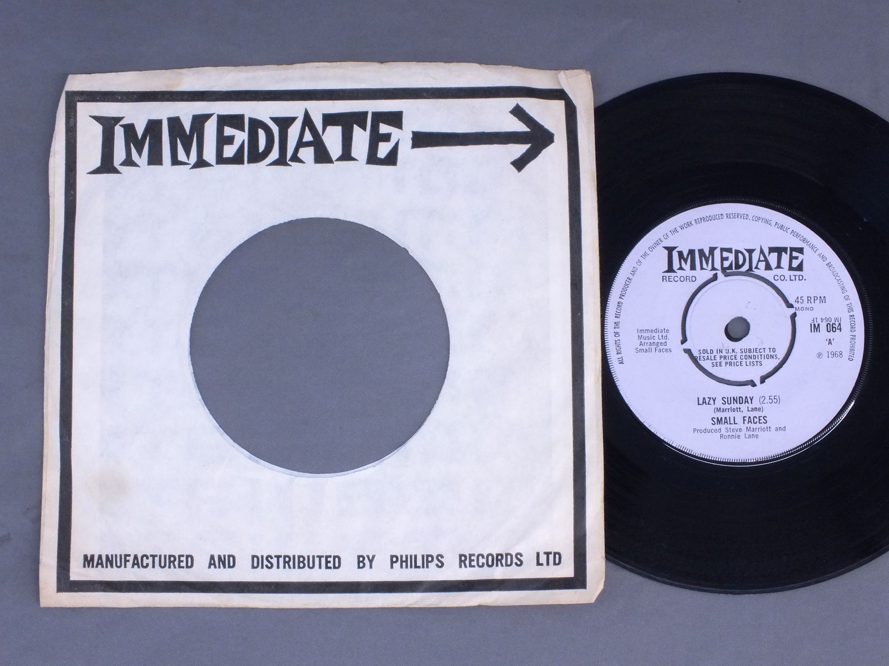 SMALL FACES/LAZY SUNDAY IM064 製造国:英国盤 / Media:7inchMatrix:枝番は特にない様子外観:EX-盤の状態:EX- 価格(税込):¥3,300(売約済) 送料 7inch:定形外郵便 360円~LP:定形外郵便 660円~送料は、注文の最終画面で確認頂けます。 > > SMALL FACES/LAZY SUNDAY 外観 (EX-)特記事項:IMMEDIATEのカンパニースリーブ付き。貴重なものです。薄いシミやよごれ、日焼け多少有り。ヨレも多少有りますが、全体的にまだまだしっかりした感じ残っています。抜けは有りません。外観EX-の共通説明:ダメージ軽度~多少。 中古品としては普通の状態。シミ、ヨゴレ、スレなど軽く~多少。 盤の状態 (EX-)特記事項:薄いスリキズ・スレ軽くある感じ。ほとんどが軽微なものの様子です。曲間など、静かなところを中心に聴いて見ましたが、チリプチ軽度で音もしっかり鳴っていました。盤EX-の共通説明:盤面のスリキズが多少有り。音に出そうなものは殆ど無いように見える~さほど気にならないぐらいの軽いプチ数カ所程度。 Tweet それぞれの画像をクリックすると、大きい写真が見られます こちらの商品もお勧めです 4,400円 FREDDIE AND THE DREAMERS / FREDDIE AND THE DREAMERS 9,900円 FOUR PENNIES / 2 SIDE OF 4 PENNIES 3,080円 JOHN`S CHILDREN / JAGGED TIME LAPSE ( RARE AND UNRELEASE ) 16,500円 SPENCER DAVIS GROUP / TRAFFIC / HERE WE GO ROUND THE MULBERRY BUSH 11,000円 FOUR PENNIES / TWO SIDES OF THE FOUR PENNIES 4,400円 FREDDIE AND DREAMERS / SING ALONG PARTY 6,600円 GEORGIE FAME / TWO FACES OF FAME 5,500円 GEORGE FAME / HALL OF FAME