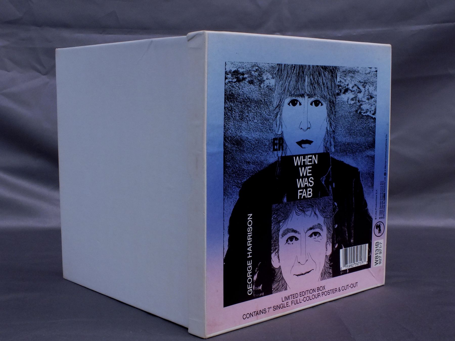 GEORGE HARRISON/WHEN WE WAS FAB LIMITED EDITON BOX限定BOX仕様 W8131B 製造国:英国盤 / Media:7inchMatrix:A-1 B-1外観:EX盤の状態:EX+ 価格(税込):¥7,700(売約済) 送料 7inch:定形外郵便 360円~LP:定形外郵便 660円~送料は、注文の最終画面で確認頂けます。 > > GEORGE HARRISON/WHEN WE WAS FAB LIMITED EDITON BOX 外観 (EX)特記事項:箱は多少ヨレシワ有りますが、全体的によごれやスレ等はあまり無い感じ。ヘリに薄いシミ軽有り。また、裏側にぶつかり跡あり。オリジナルジャケトやカード、ポスターはいずれもきれいな状態です。外観EXの共通説明:ダメージが限定的。中古品としては保存状態がよい方。シミ、ヨゴレ、スレ 少し~軽度。 盤の状態 (EX+)特記事項:薄いスリキズ・スレ少しある程度。音に出そうなものもなく一見してきれいな状態です。曲間など、静かなところを中心に聴いて見ましたが、チリノイズ少ないきれいな再生具合でした。盤EX+の共通説明:盤面の極薄いスリキズ、スレ少し程度 音に出そうなものは無いように見える(極軽微なソフトティック音は除く)。 Tweet それぞれの画像をクリックすると、大きい写真が見られます こちらの商品もお勧めです 5,500円 BEATLES / AT THE HOLLYWOOD BOWL 5,500円 GEORGE HARRISON / LIVING IN THE MATERIAL WORLD 5,500円 JOHN LENNON / SHAVED FISH 4,950円 JOHN & YOKO - PLASTIC ONO BANDF / SOME TIME IN NEW YORK CITY 5,500円 GEORGE HARRISON / THIRTY THREE & 1/3