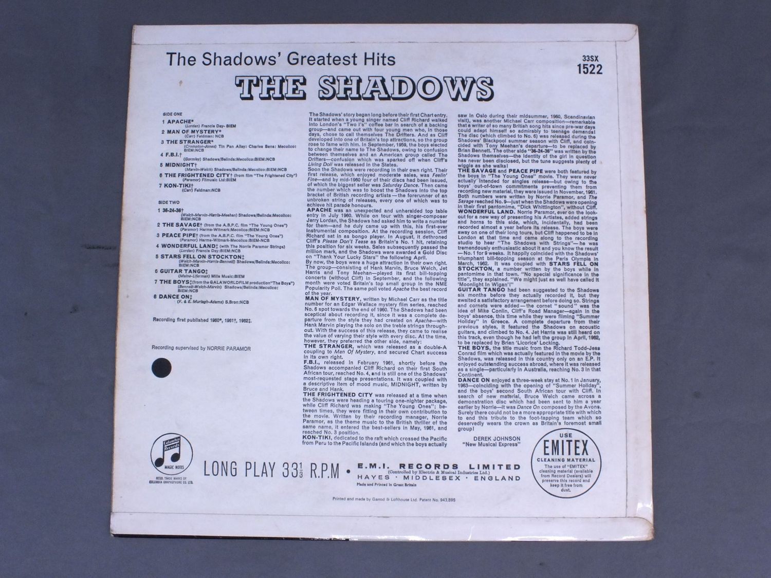 SHADOWS/GREATEST HITS SX1522 製造国:英国盤 / Media:LPMatrix:1N 2N外観:EX盤の状態:EX 価格(税込):¥3,300(売約済) 送料 7inch:定形外郵便 360円~LP:定形外郵便 660円~送料は、注文の最終画面で確認頂けます。 レコード検索 > ALL Genre > SHADOWS/GREATEST HITS 外観 (EX)特記事項:表ジャケは厚手のコーティング仕様。レコード取出し口縁にヨレ多少有り。コーティングのヨレシワ自体は少なめ。レコードリングスレや横スレ軽多少有り。裏ジャケはよごれ等は薄い感じ。外観EXの共通説明:ダメージが限定的。中古品としては保存状態がよい方。シミ、ヨゴレ、スレ 少し~軽度。 盤の状態 (EX)特記事項:薄いスリキズ・スレ少しある程度。音に出そうなものもなく一見してきれいな状態です。曲間など、静かなところを中心に聴いて見ましたが、チリノイズ少ないきれいな再生具合でした。盤EXの共通説明:盤面のスリキズが薄いものが少し~軽度 音に出そうなものは無いように見える(軽微なソフトティック音は除く)。 その他:EMI 1 マークレーベル。69年 2ndレーベル盤です。 Tweet それぞれの画像をクリックすると、大きい写真が見られます こちらの商品もお勧めです 3,520円 PIGEON PIE / LIEUTENANT PIGEON 8,250円 MARK BOLAN / BOLAN`S ZIP GUN 3,300円 ABBA / GREATEST HITS 4,400円 BAD COMPANY / STRAIGHT SHOOTER 16,500円 GRAPEFRUIT / DEEP WATER 8,250円 FREE / AT LAST 4,950円 FREE / AT LAST 4,400円 BAD COMPANY / RUN WITH THE PACK