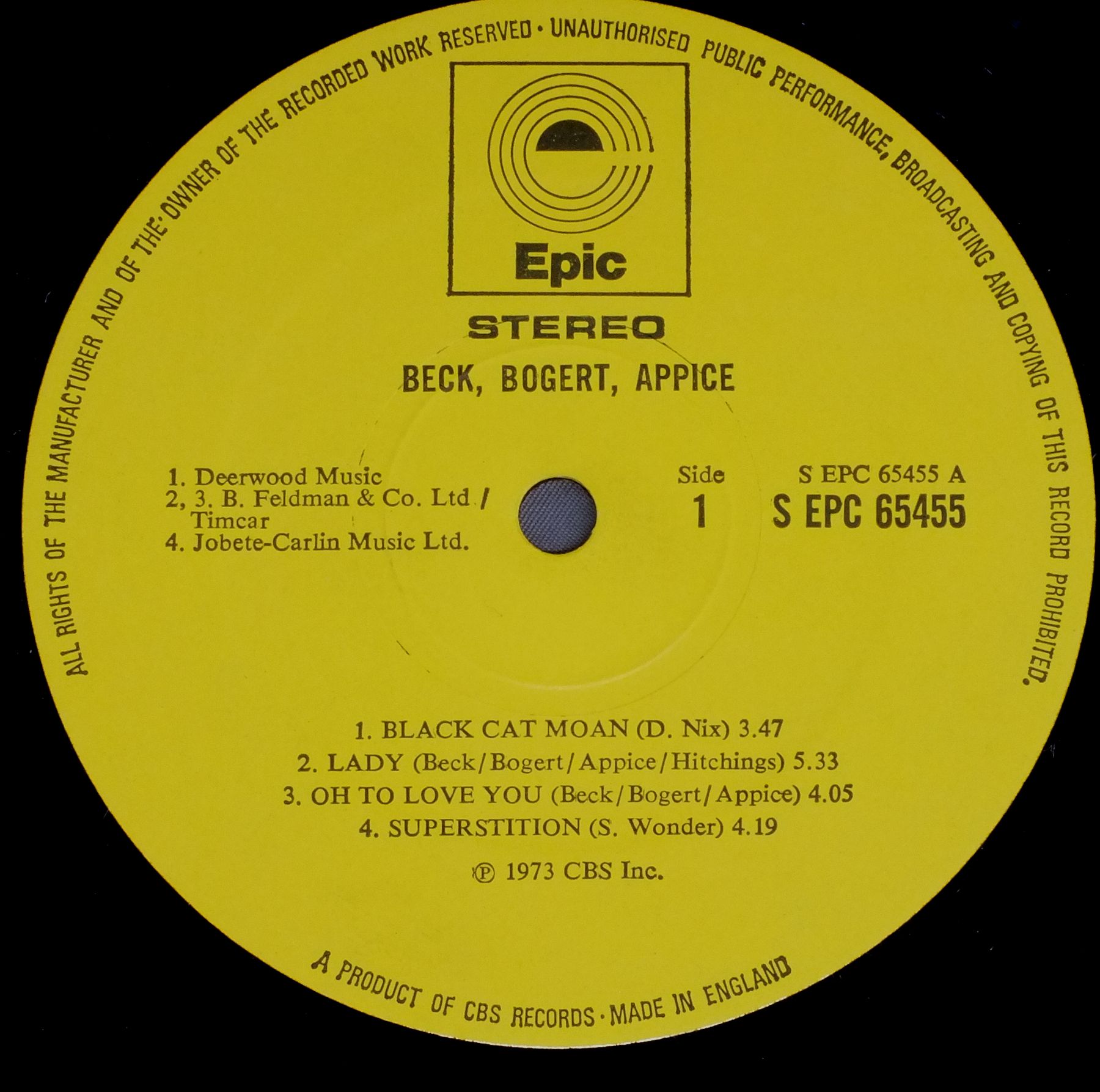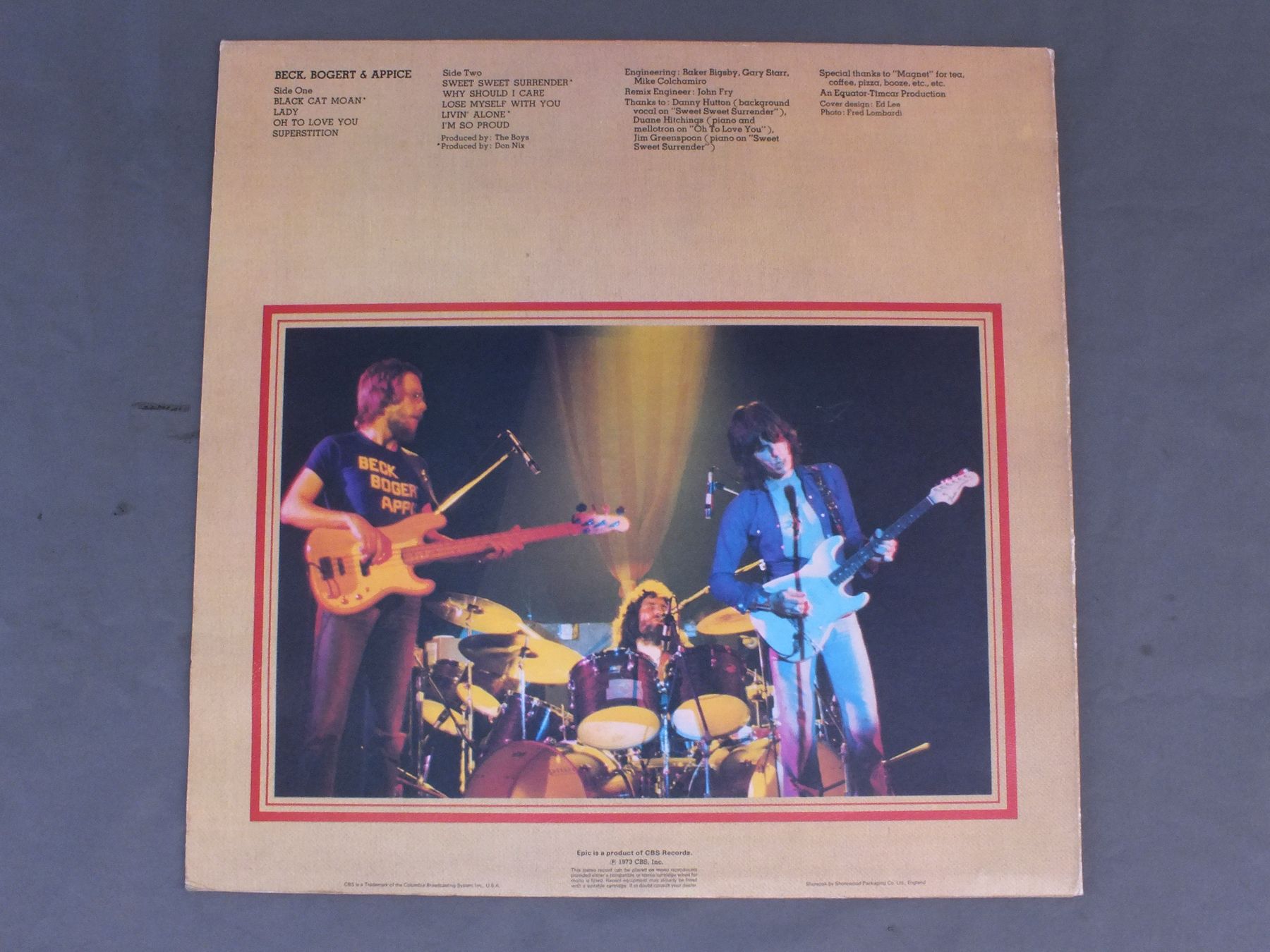 JEFF BECK TIM BOGERT CARMINE APPICE/BECK BOGERT APPICE EPC65455 製造国:英国盤 / Media:LPMatrix:A3 B3外観:EX盤の状態:EX+ 価格(税込):¥5,610(売約済) 送料 7inch:定形外郵便 360円~LP:定形外郵便 660円~送料は、注文の最終画面で確認頂けます。 レコード検索 > > JEFF BECK TIM BOGERT CARMINE APPICE/BECK BOGERT APPICE 外観 (EX)特記事項:ジャケ表面に薄いですが細かいエンボスの入った凝った仕様。背スレや底スレ多少有り。上ヘリにドットスレが少し。表ジャケの上の方にレコードリングスレが少し有りますが、ジャケ表面は全体的にスレやスリキズ、よごれ等は少ない印象。外観EXの共通説明:ダメージが限定的。中古品としては保存状態がよい方。シミ、ヨゴレ、スレ 少し~軽度。 盤の状態 (EX+)特記事項:薄いスリキズ・スレ少しある程度。音に出そうなものもなく一見してきれいな状態です。曲間など、静かなところを中心に聴いて見ましたが、チリノイズ少ないきれいな再生具合でした。盤EX+の共通説明:盤面の極薄いスリキズ、スレ少し程度 音に出そうなものは無いように見える(極軽微なソフトティック音は除く)。 Tweet それぞれの画像をクリックすると、大きい写真が見られます こちらの商品もお勧めです 6,050円 JEFF BECK TIM BOGERTY CARMINE APPICE / BECK BOGERT APPICE