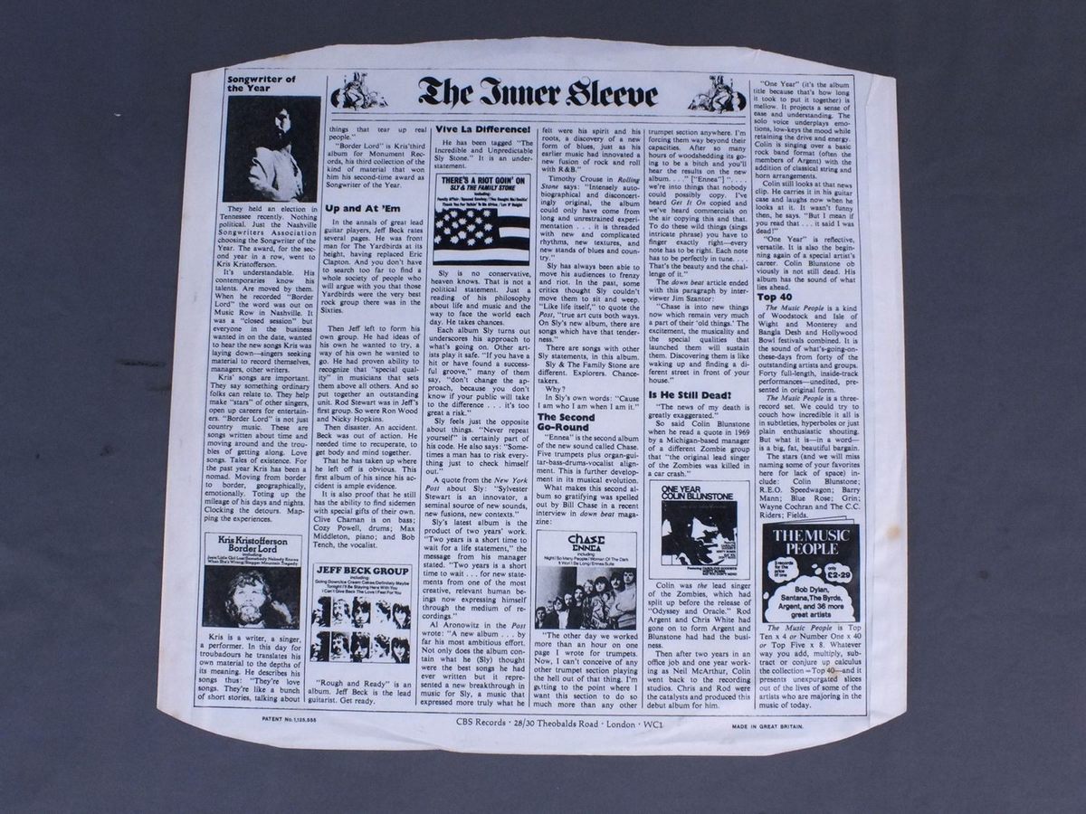 SANTANA/CARAVANSERAI 65299 製造国:英国盤 / Media:LPMatrix:A1 B1外観:EX盤の状態:EX 価格(税込):¥4,400(売約済) 送料 7inch:定形外郵便 360円~LP:定形外郵便 660円~送料は、注文の最終画面で確認頂けます。 > > SANTANA/CARAVANSERAI 外観 (EX)特記事項:ヘリスレや背スレ有り。角スレも多少有り。表ジャケは全体的にスレやスリキズ、よごれ等は少なめ。裏ジャケはレコード取出し口側にヨレ多少有り。見開きはエンボスの入った仕様。スレやよごれ等はあまり無い感じです。外観EXの共通説明:ダメージが限定的。中古品としては保存状態がよい方。シミ、ヨゴレ、スレ 少し~軽度。 盤の状態 (EX)特記事項:B4にあるスレで少しだけプチ有りますが、軽度のチリプチ範囲内の印象。全体的に薄いスリキズ・スレ軽く有る感じ。殆どが軽微なものの様子で、きれいな印象。曲間など、静かなところを中心に聴いて見ましたが、チリノイズ少ないきれいな再生具合でした。盤EXの共通説明:盤面のスリキズが薄いものが少し~軽度 音に出そうなものは無いように見える(軽微なソフトティック音は除く)。 Tweet それぞれの画像をクリックすると、大きい写真が見られます こちらの商品もお勧めです 4,400円 AREA CODE 615 / TRIP IN THE COUNTRY 6,050円 ALLMAN BROTHERS BAND / WIPE THE WINDOWS 9,900円 BIG BROTHER AND HOLDING COMPAMY / SAME TITLE / MONO 2,750円 RASCALS / TIME PEACE RASCALS GREATEST HITS 7,700円 BLUE JAG / SAME TITLE 5,500円 HUMIMGBIRD / HUMIMNGBIRD 4,950円 BIG BROTHER AND THE HOLDING CO / BE A BROTHER