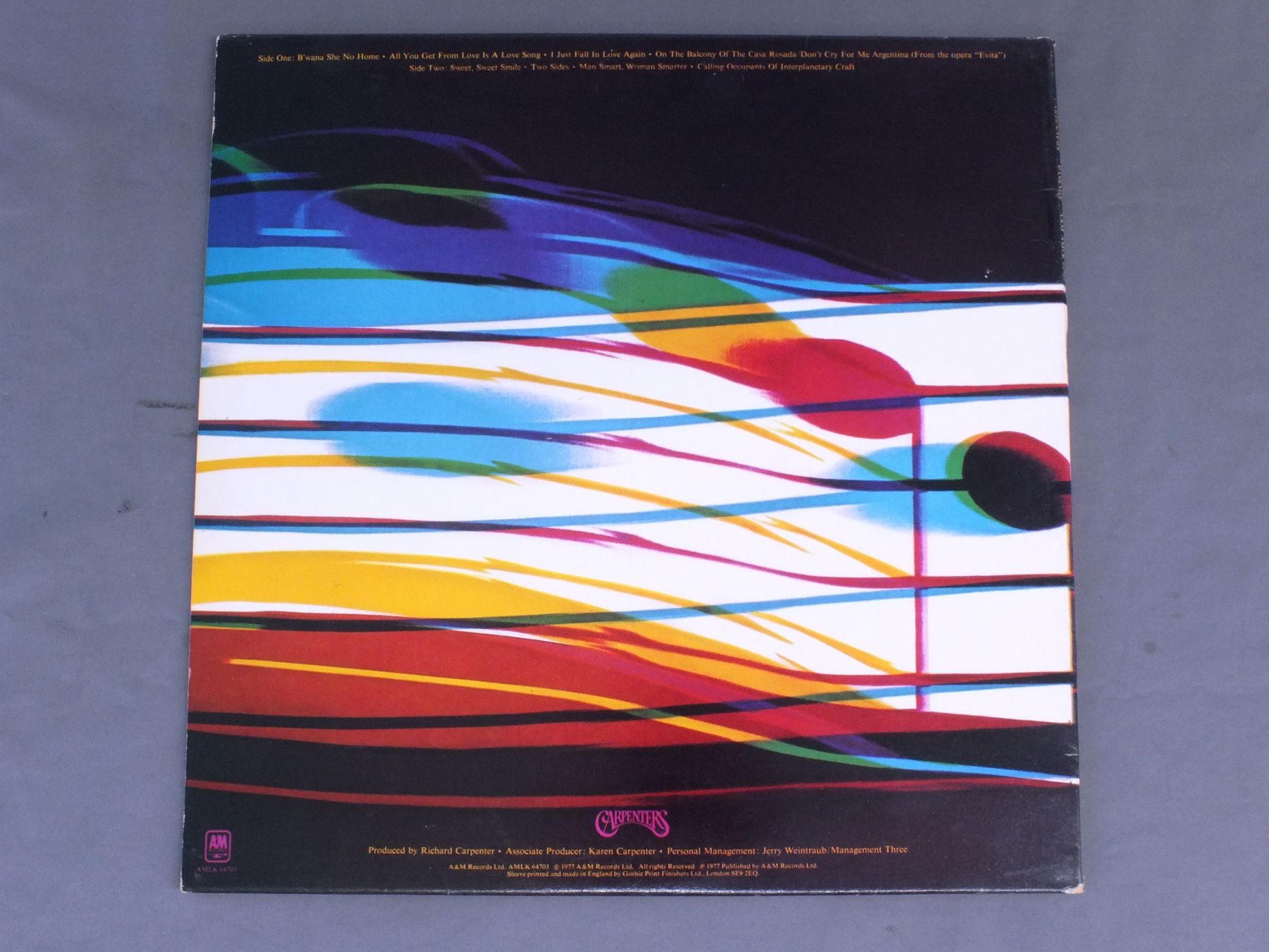 CARPENTERS/PASSAGE AMLK64703 製造国:英国盤 / Media:LPMatrix:A2 B4外観:EX盤の状態:EX- 価格(税込):¥3,300(売約済) 送料 7inch:定形外郵便 360円~LP:定形外郵便 660円~送料は、注文の最終画面で確認頂けます。 > > CARPENTERS/PASSAGE 外観 (EX)特記事項:表ジャケの背上付近にスリキズ。ジャケ表面は見開きも含めてスレやスリキズ、よごれ等は少ない感じ。外観EXの共通説明:ダメージが限定的。中古品としては保存状態がよい方。シミ、ヨゴレ、スレ 少し~軽度。 盤の状態 (EX-)特記事項:薄いスリキズ・スレ少しある程度。音に出そうなものもなく一見してきれいな状態です。曲間など、静かなところを中心に聴いて見ましたが、若干バックグランドノイズが有りますが、曲中は気になら無い程度のものでした。音もとてもクリアーに鳴っています。盤EX-の共通説明:盤面のスリキズが多少有り。音に出そうなものは殆ど無いように見える~さほど気にならないぐらいの軽いプチ数カ所程度。 Tweet それぞれの画像をクリックすると、大きい写真が見られます こちらの商品もお勧めです 7,700円 SUSAN MAUGHAN / I WANNA BE BOBBY`S GIRL 4,950円 JONI MITCHELL / DOG EAT DOG 4,400円 JONI MITCHELL / DOG EAT DOG 5,060円 JONI MITCHELL / CHALK MARK IN A RAIN STORM 3,850円 NICO / THE END 4,950円 SANDY DENNY / RENDEZVOUS