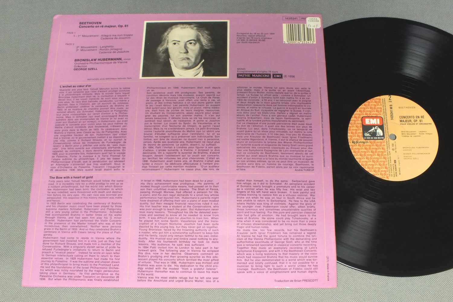 BRONISLAW HUBERMANN/BEETHOVEN CONC. POUR VIOLON 1435341 製造国:仏盤 / Media:LP外観:EX盤の状態:EX+ 価格(税込):¥2,200(売約済) 送料 7inch:定形外郵便 360円~LP:定形外郵便 660円~送料は、注文の最終画面で確認頂けます。 > > BRONISLAW HUBERMANN/BEETHOVEN CONC. POUR VIOLON 外観 (EX)特記事項:特記なし。外観EXの共通説明:ダメージが限定的。中古品としては保存状態がよい方。シミ、ヨゴレ、スレ 少し~軽度。 盤の状態 (EX+)特記事項:薄いスリキズ・スレ少し。一見してきれいな状態です。盤EX+の共通説明:盤面の極薄いスリキズ、スレ少し程度 音に出そうなものは無いように見える(極軽微なソフトティック音は除く)。 Tweet それぞれの画像をクリックすると、大きい写真が見られます こちらの商品もお勧めです 2,200円 KARAJAN / BRUCKNER SYM. NO4 990円 ORCH. SAN PIETRO / BOCCHERINI/SACCHIN 990円 GERHARD PFLUGER / CLASSICAL BALLET MUSIC 1,980円 CREMENS KRAUSS / STRAUSS TILL EULENSPIEGEL 1,540円 FISCHER DIESKAU - MARIA STADER - FRICSAY / GLUCK - ORPHEUS UND EURYDIKE 990円 EUGENE ISTOMIN-WALTER-ORMANDY / SCHUMANN-CHOPIN-PIANO CONC. 1,540円 FRICSAY-BERLIN PHILHARMONIC / BEETHOVEN-SYM. NO9 1,760円 FISCHER-FURTWANGLER / BRAHMS-CONC. NO2