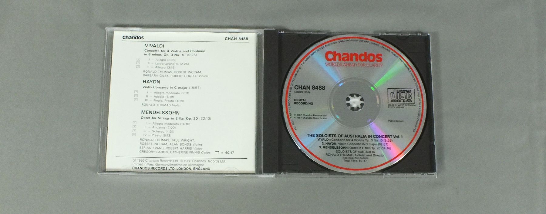 RONALD THOMA/SOLOISTS OF AUSTRALIA CHAN8488 製造国:独盤 / Media:CD外観:EX+盤の状態:EX+ 価格(税込):¥1,540 送料 7inch:定形外郵便 360円~LP:定形外郵便 660円~送料は、注文の最終画面で確認頂けます。 レコード検索 > YES > RONALD THOMA/SOLOISTS OF AUSTRALIA 外観 (EX+)特記事項:ヨレ、スレ少々。ヨゴレなども少しだけできれいな感じです。外観EX+の共通説明:中古としては美品、一見してきれいでダメージが軽微。シミ、ヨゴレ、スレ有っても僅か~少し。 盤の状態 (EX+)特記事項:微細なスリキズが少々。きれいな感じの盤面です。盤EX+の共通説明:盤面の極薄いスリキズ、スレ少し程度 音に出そうなものは無いように見える(極軽微なソフトティック音は除く)。 Tweet それぞれの画像をクリックすると、大きい写真が見られます こちらの商品もお勧めです 990円 BEAUX ARTS TRIOボザール・トリオ / BEETHOVEN - PIANO TRIO NO.7ベートーヴェン - ピアノ三重奏曲第7番 1,320円 ACHENBACH - DAS HEIDELBERGER KAMMERORCHESTERアッヘンバッハ - ハイデルベルグ室内管弦楽団 / BACH - MESSE IN H-MOLLバッハ - ロ短調ミサ曲