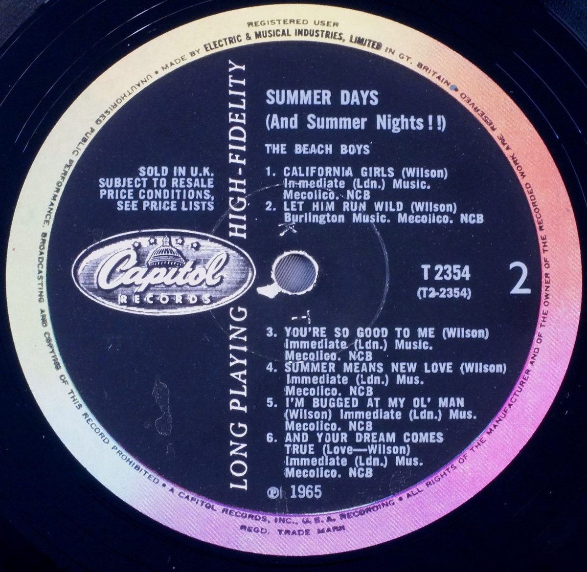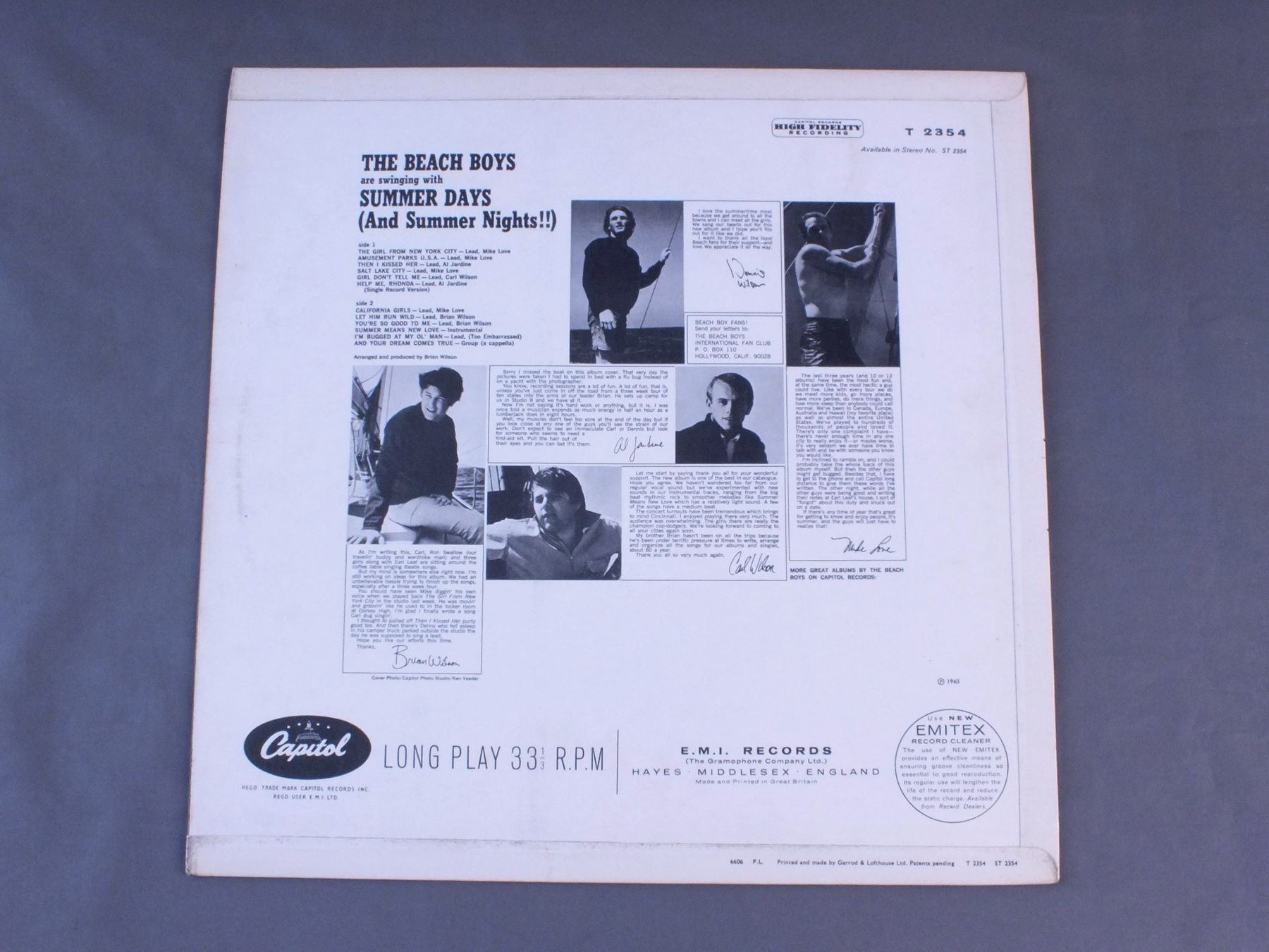 BEACH BOYS/SUMMER DAYS MONO T2354 製造国:英国盤 / Media:LPMatrix: -1 -1外観:EX盤の状態:EX 価格(税込):¥8,800(売約済) 送料 7inch:定形外郵便 360円~LP:定形外郵便 660円~送料は、注文の最終画面で確認頂けます。 > > BEACH BOYS/SUMMER DAYS MONO 外観 (EX)特記事項:表ジャケは厚手のコーティング仕様。コーティングのヨレシワは全体的に少なめ。スレやスリキズ等も薄い感じです。裏ジャケもよごれは薄い感じ。外観EXの共通説明:ダメージが限定的。中古品としては保存状態がよい方。シミ、ヨゴレ、スレ 少し~軽度。 盤の状態 (EX)特記事項:薄いスリキズ・スレ少しある程度。音に出そうなものもなく一見してきれいな状態です。曲間など、静かなところを中心に聴いて見ましたが、チリノイズ少ないきれいな再生具合でした。盤EXの共通説明:盤面のスリキズが薄いものが少し~軽度 音に出そうなものは無いように見える(軽微なソフトティック音は除く)。 Tweet それぞれの画像をクリックすると、大きい写真が見られます こちらの商品もお勧めです