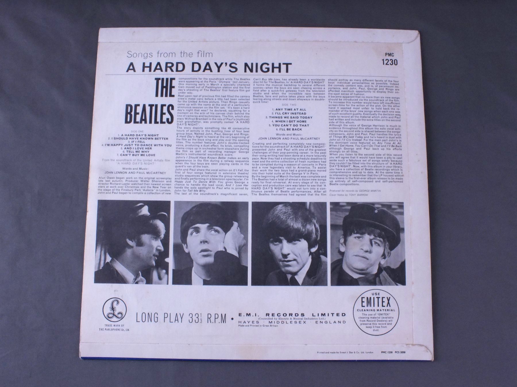 BEATLES/HARD DAY`S NIGHT PMC1230 製造国:英国盤 / Media:LPMatrix:3N/1/AAM 3N/3/ADL外観:EX盤の状態:EX 価格(税込):¥13,200(売約済) 送料 7inch:定形外郵便 360円~LP:定形外郵便 660円~送料は、注文の最終画面で確認頂けます。 > > BEATLES/HARD DAY`S NIGHT 外観 (EX)特記事項:表ジャケは厚手のコーティング仕様。背上やレコード取出し口下で角スレ多少有り。表ジャケ表面はコーティングのヨレシワも少なく、スレやスリキズ等も少ないきれいな状態。裏ジャケは折り返し部分にシミが多少有りますが、全体的によごれ等の少ない良い状態です。外観EXの共通説明:ダメージが限定的。中古品としては保存状態がよい方。シミ、ヨゴレ、スレ 少し~軽度。 盤の状態 (EX)特記事項:薄いスリキズ・スレ軽く有る感じ。殆どが軽微なものの様子で、きれいな印象。曲間など、静かなところを中心に聴いて見ましたが、チリノイズ少ないきれいな再生具合でした。盤EXの共通説明:盤面のスリキズが薄いものが少し~軽度 音に出そうなものは無いように見える(軽微なソフトティック音は除く)。 Tweet それぞれの画像をクリックすると、大きい写真が見られます こちらの商品もお勧めです 5,500円 BEATLES / AT THE HOLLYWOOD BOWL 5,500円 GEORGE HARRISON / THIRTY THREE & 1/3 4,950円 JOHN & YOKO - PLASTIC ONO BANDF / SOME TIME IN NEW YORK CITY 5,500円 GEORGE HARRISON / LIVING IN THE MATERIAL WORLD 5,500円 JOHN LENNON / SHAVED FISH