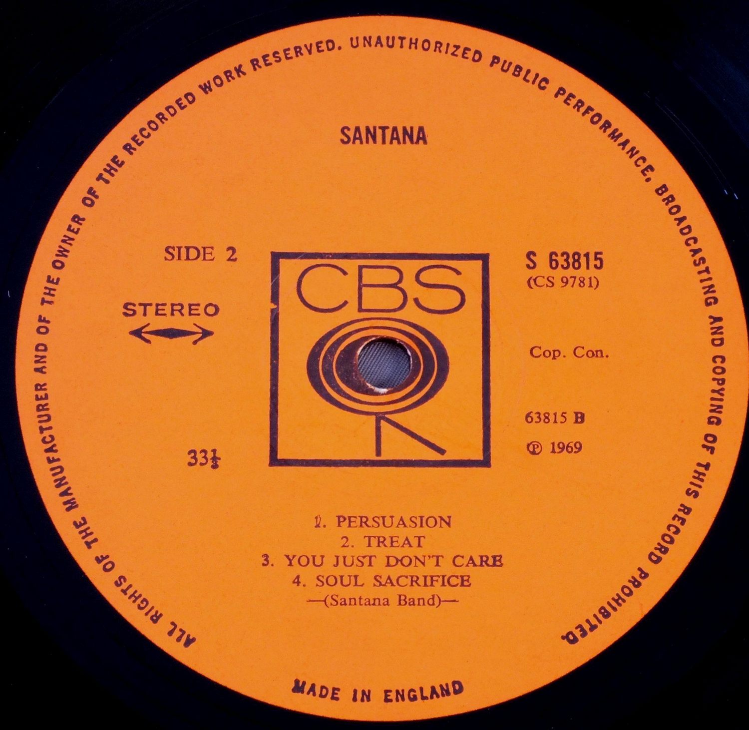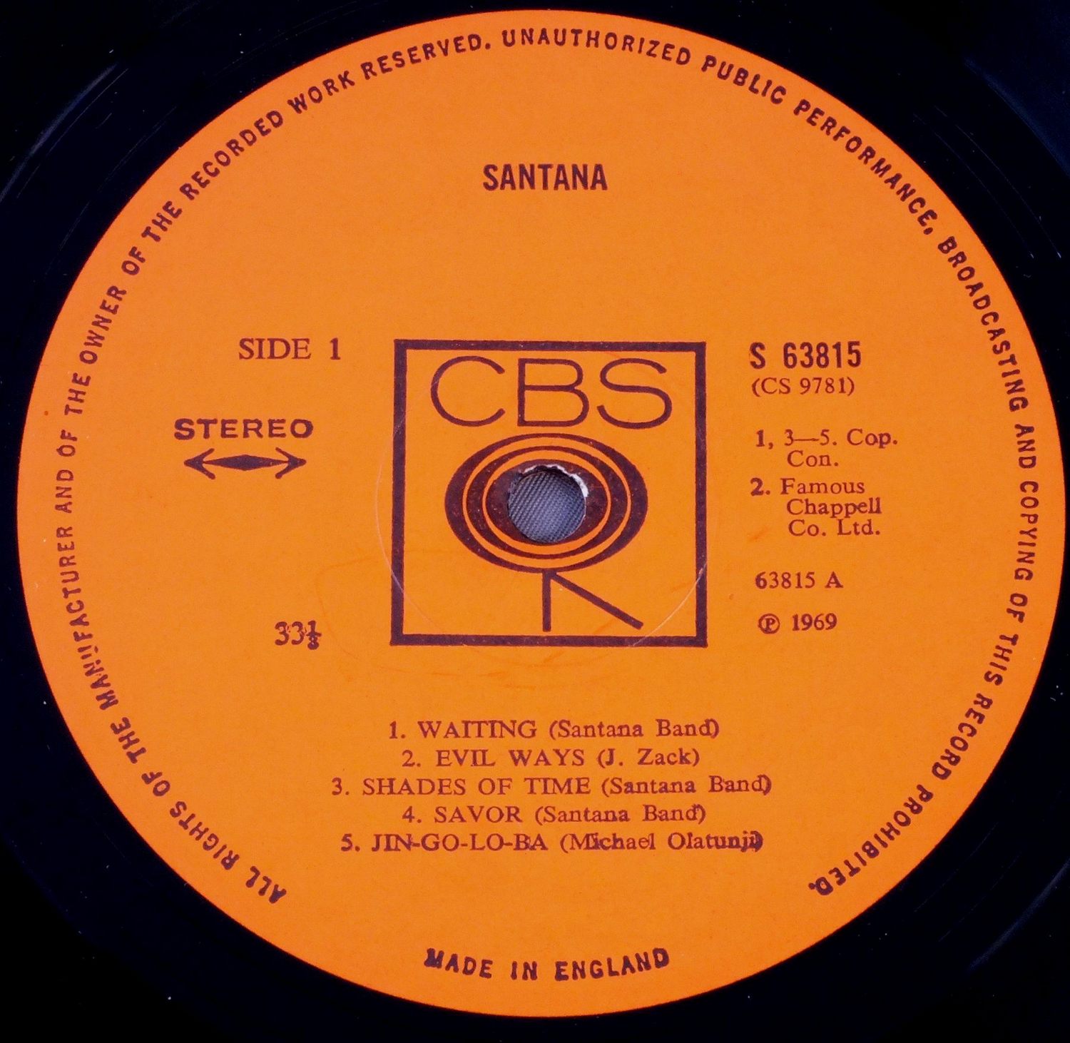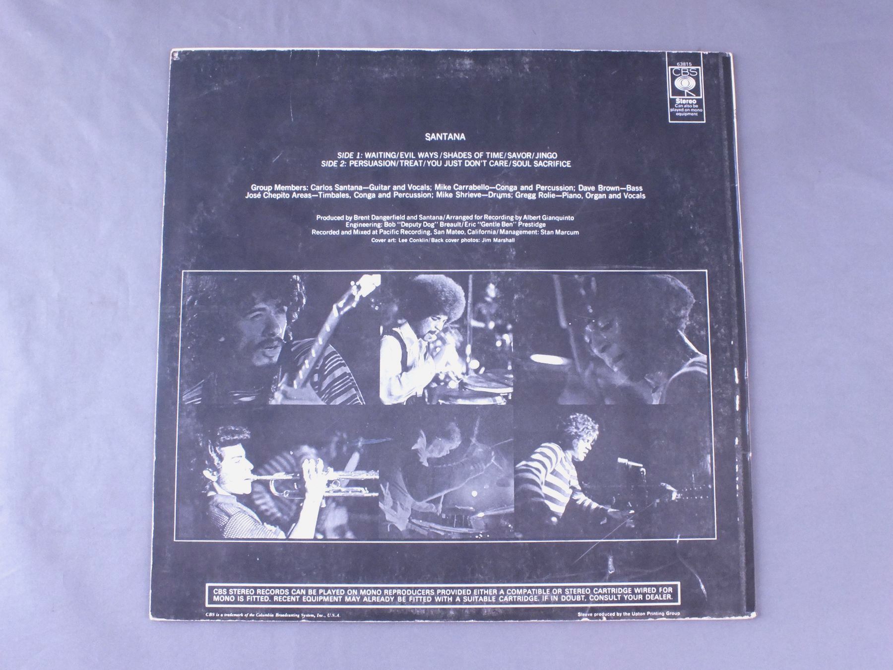 SANTANA/1st ALBUM S63815 製造国:英国盤 / Media:LPMatrix:A1 B1外観:EX-盤の状態:EX 価格(税込):¥5,500(売約済) 送料 7inch:定形外郵便 360円~LP:定形外郵便 660円~送料は、注文の最終画面で確認頂けます。 > > SANTANA/1st ALBUM 外観 (EX-)特記事項:英国盤は表ジャケが厚手のコーティング仕様。表ジャケはコーティングのヨレシワは少ない感じですが、背やレコード取り出し口側に多少日焼け感有り。また、レコード取り出し口上にキズが少し。 裏ジャケはスレや細かいスリキズ、背付近に細長い剥がれ等。外観EX-の共通説明:ダメージ軽度~多少。 中古品としては普通の状態。シミ、ヨゴレ、スレなど軽く~多少。 盤の状態 (EX)特記事項:薄いスリキズ・スレ少しある程度。音に出そうなものもなく一見してきれいな状態です。曲間など、静かなところを中心に聴いて見ましたが、チリノイズ少ないきれいな再生具合でした。盤EXの共通説明:盤面のスリキズが薄いものが少し~軽度 音に出そうなものは無いように見える(軽微なソフトティック音は除く)。 Tweet それぞれの画像をクリックすると、大きい写真が見られます こちらの商品もお勧めです 2,750円 RASCALS / TIME PEACE RASCALS GREATEST HITS 6,050円 ALLMAN BROTHERS BAND / WIPE THE WINDOWS 4,400円 AREA CODE 615 / TRIP IN THE COUNTRY 7,700円 BLUE JAG / SAME TITLE 9,900円 BIG BROTHER AND HOLDING COMPAMY / SAME TITLE / MONO 5,500円 HUMIMGBIRD / HUMIMNGBIRD 4,950円 BIG BROTHER AND THE HOLDING CO / BE A BROTHER