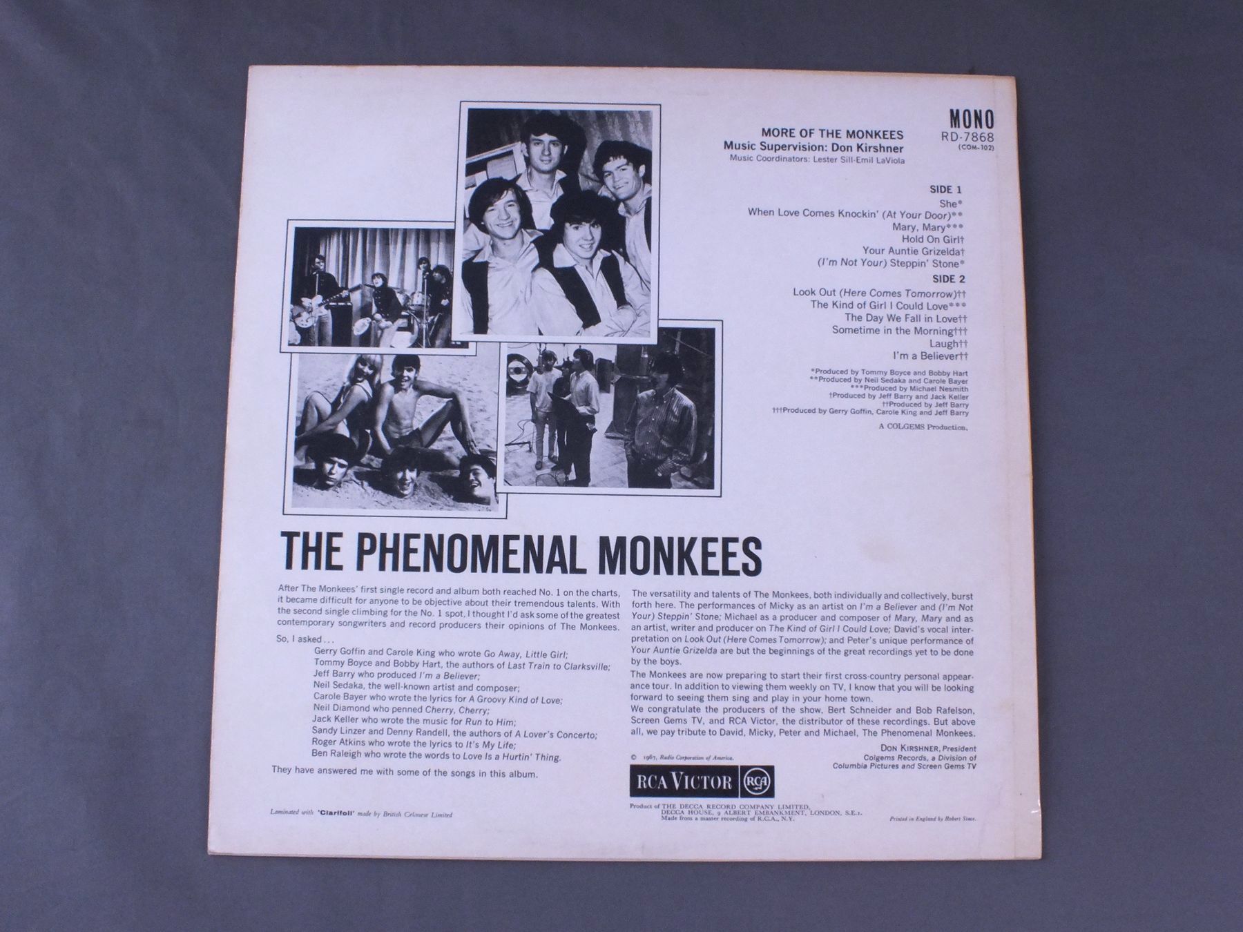 MONKEES/MORE OF THE MONKEES RD7868 製造国:英国盤 / Media:LPMatrix:1K 1K外観:EX盤の状態:EX 価格(税込):¥3,850(売約済) 送料 7inch:定形外郵便 360円~LP:定形外郵便 660円~送料は、注文の最終画面で確認頂けます。 > > MONKEES/MORE OF THE MONKEES 外観 (EX)特記事項:英国盤は表ジャケが厚手のコーティング仕様。表ジャケは背付近に折れシワやヨレシワが少し。全体的にスレやスリキズ、よごれ等あまり無い感じのきれいな状態。 裏ジャケもよごれ等は少ないです。外観EXの共通説明:ダメージが限定的。中古品としては保存状態がよい方。シミ、ヨゴレ、スレ 少し~軽度。 盤の状態 (EX)特記事項:薄いスリキズ・スレ軽く有る感じ。殆どが軽微なものの様子で、きれいな印象。曲間など、静かなところを中心に聴いて見ましたが、チリノイズ少ないきれいな再生具合でした。盤EXの共通説明:盤面のスリキズが薄いものが少し~軽度 音に出そうなものは無いように見える(軽微なソフトティック音は除く)。 Tweet それぞれの画像をクリックすると、大きい写真が見られます こちらの商品もお勧めです 7,700円 BLUE JAG / SAME TITLE 4,400円 AREA CODE 615 / TRIP IN THE COUNTRY 5,500円 HUMIMGBIRD / HUMIMNGBIRD 9,900円 BIG BROTHER AND HOLDING COMPAMY / SAME TITLE / MONO 4,950円 BIG BROTHER AND THE HOLDING CO / BE A BROTHER 2,750円 RASCALS / TIME PEACE RASCALS GREATEST HITS 6,050円 ALLMAN BROTHERS BAND / WIPE THE WINDOWS