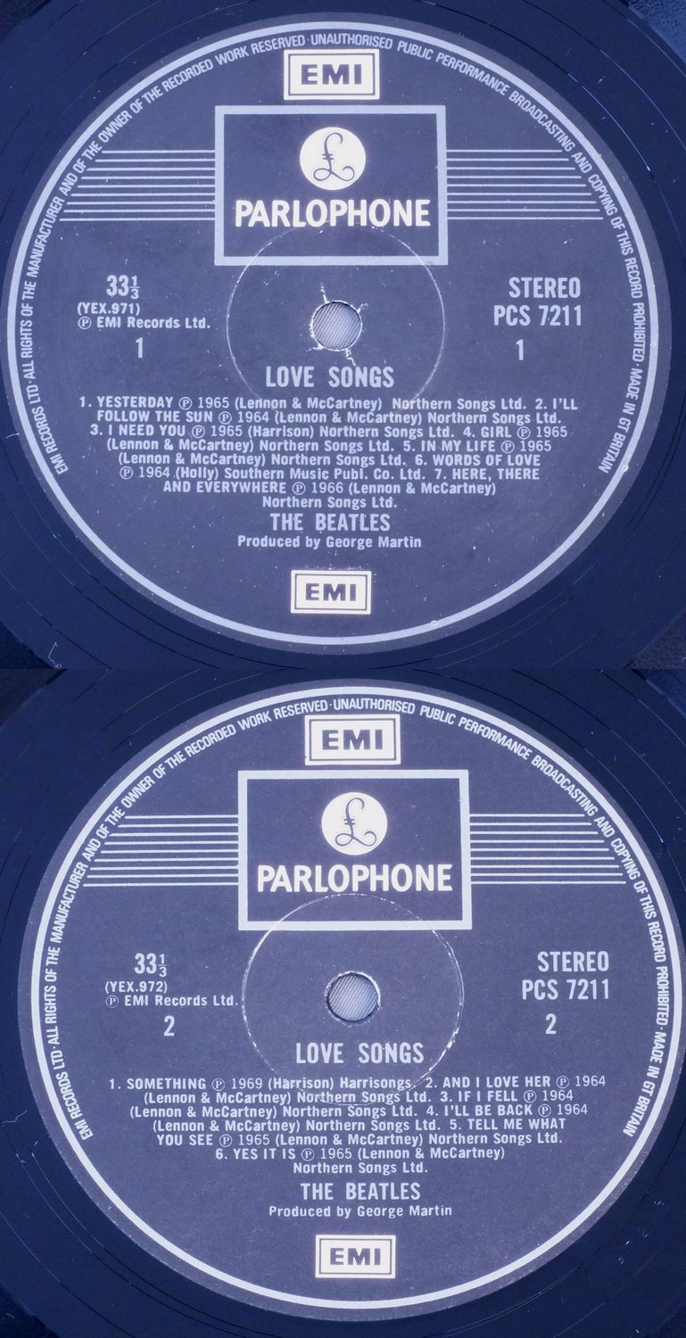 BEATLES/LOVE SONGS PCS7211-12 製造国:英国盤 / Media:LPMatrix: -1 -3 -2 -1外観:EX盤の状態:EX+ 価格(税込):¥4,950(売約済) 送料 7inch:定形外郵便 360円~LP:定形外郵便 660円~送料は、注文の最終画面で確認頂けます。 > > BEATLES/LOVE SONGS 外観 (EX)特記事項:底スレ有り。背スレ多少。表ジャケは周辺部に短いヨレシワ。裏ジャケにも背付近に短いヨレシワ有り。ジャケ表面は全体的にスレやスリキズ、よごれ等は薄い感じ。見開きに多少レコードリングスレ有り。外観EXの共通説明:ダメージが限定的。中古品としては保存状態がよい方。シミ、ヨゴレ、スレ 少し~軽度。 盤の状態 (EX+)特記事項:薄いスリキズ・スレ少しある程度。音に出そうなものもなく一見してきれいな状態です。曲間など、静かなところを中心に聴いて見ましたが、チリノイズ少ないきれいな再生具合でした。盤EX+の共通説明:盤面の極薄いスリキズ、スレ少し程度 音に出そうなものは無いように見える(極軽微なソフトティック音は除く)。 Tweet それぞれの画像をクリックすると、大きい写真が見られます こちらの商品もお勧めです 5,500円 GEORGE HARRISON / THIRTY THREE & 1/3 5,500円 BEATLES / AT THE HOLLYWOOD BOWL 5,500円 JOHN LENNON / SHAVED FISH 5,500円 GEORGE HARRISON / LIVING IN THE MATERIAL WORLD 4,950円 JOHN & YOKO - PLASTIC ONO BANDF / SOME TIME IN NEW YORK CITY