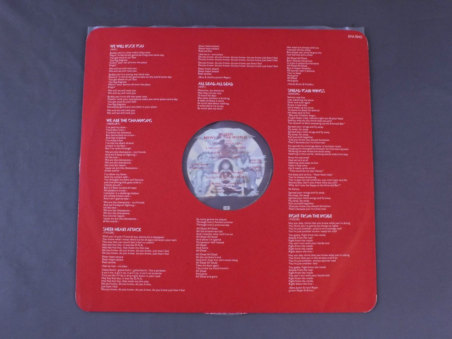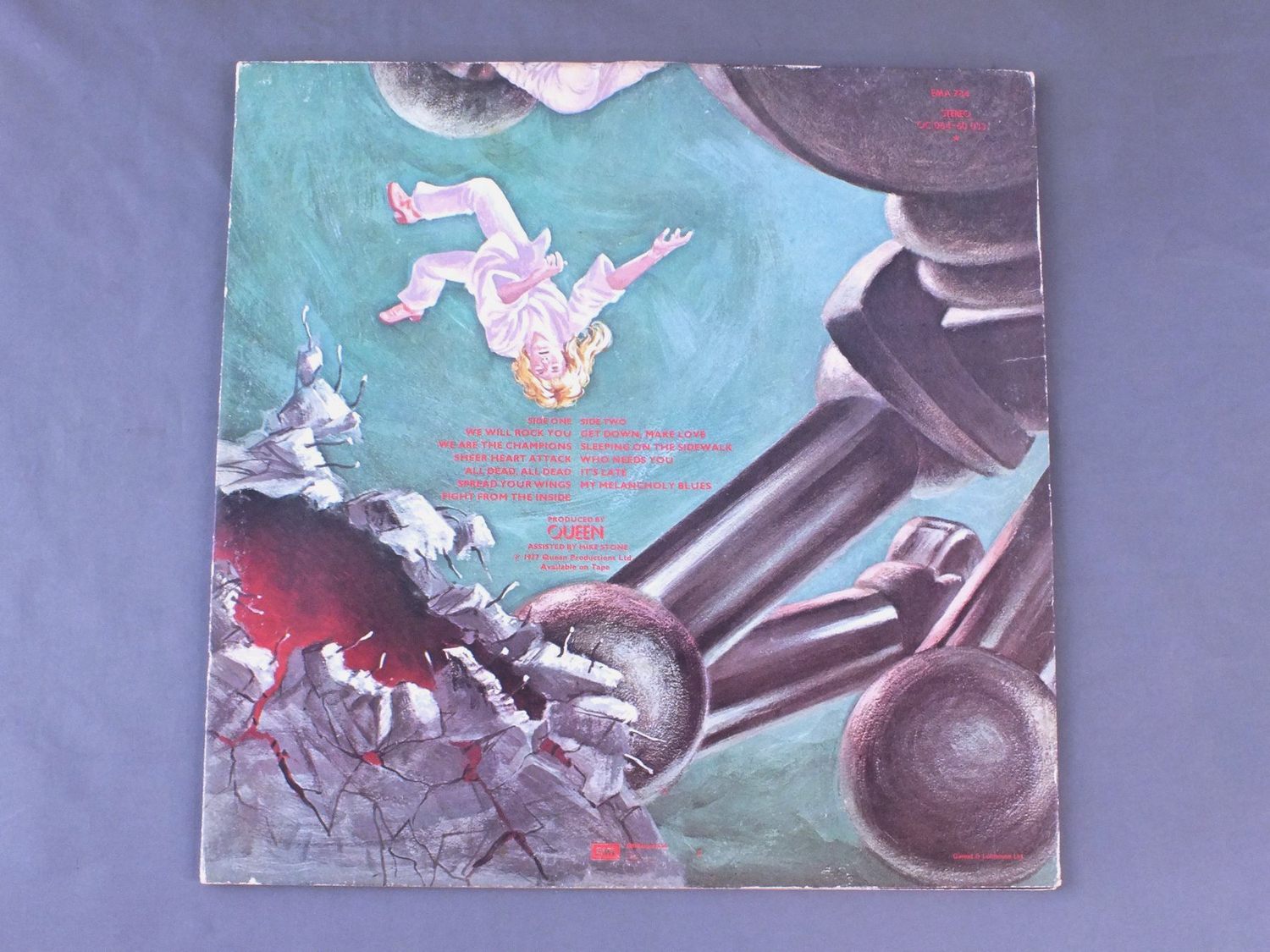 QUEEN/NEWS OF THE WORLD EMA784 製造国:英国盤 / Media:LPMatrix: -1 -2外観:EX-盤の状態:EX 価格(税込):¥6,600(売約済) 送料 7inch:定形外郵便 360円~LP:定形外郵便 660円~送料は、注文の最終画面で確認頂けます。 > > QUEEN/NEWS OF THE WORLD 外観 (EX-)特記事項:背スレやヘリスレ有り。ジャケ表面は全体的にスレやスリキズ等は少ない印象。よごれ等も薄い感じです。見開きもきれいな感じ。オリジナルインナーはヨレ感の無いしっかりした状態でよごれもあまり無いですが、底抜けと両サイドに僅かな抜け有り。外観EX-の共通説明:ダメージ軽度~多少。 中古品としては普通の状態。シミ、ヨゴレ、スレなど軽く~多少。 盤の状態 (EX)特記事項:薄いスリキズ・スレ少しある程度。音に出そうなものもなく一見してきれいな状態です。曲間など、静かなところを中心に聴いて見ましたが、チリノイズ少ないきれいな再生具合でした。盤EXの共通説明:盤面のスリキズが薄いものが少し~軽度 音に出そうなものは無いように見える(軽微なソフトティック音は除く)。 Tweet それぞれの画像をクリックすると、大きい写真が見られます こちらの商品もお勧めです