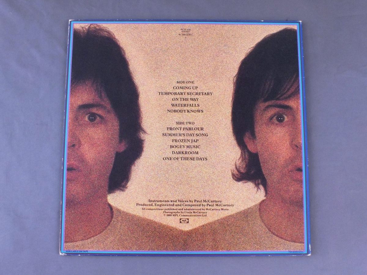 PAUL McCARTNEY/McCARTNEY II PCTC258 製造国:英国盤 / Media:LPMatrix:A-2U B-2U外観:EX盤の状態:EX 価格(税込):¥4,950(売約済) 送料 7inch:定形外郵便 360円~LP:定形外郵便 660円~送料は、注文の最終画面で確認頂けます。 > > PAUL McCARTNEY/McCARTNEY II 外観 (EX)特記事項:背スレやヘリスレ多少有り。ジャケ表面は見開きも含めて全体的にスレやスリキズ、よごれ等は少ない印象。オリジナルインナーもしっかりした状態でよごれも少ない感じです。レコード取出し口に短い切れ有り。外観EXの共通説明:ダメージが限定的。中古品としては保存状態がよい方。シミ、ヨゴレ、スレ 少し~軽度。 盤の状態 (EX)特記事項:A面最初に薄くスレたようなところ有りますが音には影響ない様子。他薄いスリキズ・スレ少しある程度。音に出そうなものもなく一見してきれいな状態です。曲間など、静かなところを中心に聴いて見ましたが、チリノイズ少ないきれいな再生具合でした。盤EXの共通説明:盤面のスリキズが薄いものが少し~軽度 音に出そうなものは無いように見える(軽微なソフトティック音は除く)。 Tweet それぞれの画像をクリックすると、大きい写真が見られます こちらの商品もお勧めです 5,500円 GEORGE HARRISON / LIVING IN THE MATERIAL WORLD 5,500円 JOHN LENNON / SHAVED FISH 5,500円 BEATLES / AT THE HOLLYWOOD BOWL 4,950円 JOHN & YOKO - PLASTIC ONO BANDF / SOME TIME IN NEW YORK CITY 5,500円 GEORGE HARRISON / THIRTY THREE & 1/3