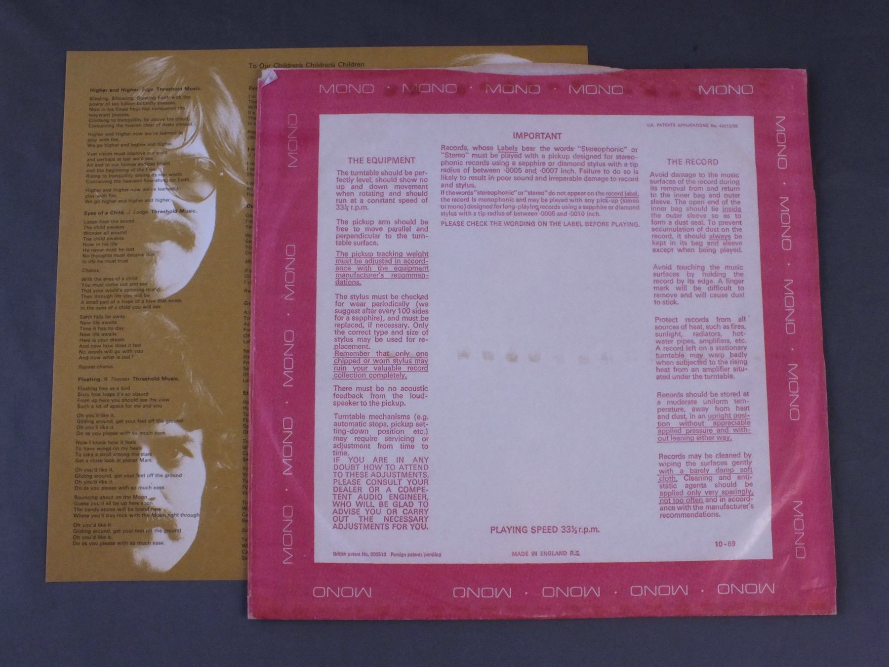 MOODY BLUES/TO OUR CHILDRENS CHILDRENS CHILDREN MONO THM1 製造国:英国盤 / Media:LP外観:EX盤の状態:EX 価格(税込):¥11,000(売約済) 送料 7inch:定形外郵便 360円~LP:定形外郵便 660円~送料は、注文の最終画面で確認頂けます。 > > MOODY BLUES/TO OUR CHILDRENS CHILDRENS CHILDREN MONO 外観 (EX)特記事項:背スレやヘリスレ、角スレ多少有り。ジャケ表面は見開きも含めて全体的にスレやスリキズ、よごれ等は少ない感じ。歌詞カードもきれいな状態です。外観EXの共通説明:ダメージが限定的。中古品としては保存状態がよい方。シミ、ヨゴレ、スレ 少し~軽度。 盤の状態 (EX)特記事項:薄いスリキズ・スレ少しある程度。音に出そうなものもなく一見してきれいな状態です。曲間など、静かなところを中心に聴いて見ましたが、チリノイズ少ないきれいな再生具合でした。盤EXの共通説明:盤面のスリキズが薄いものが少し~軽度 音に出そうなものは無いように見える(軽微なソフトティック音は除く)。 Tweet それぞれの画像をクリックすると、大きい写真が見られます こちらの商品もお勧めです 5,500円 NICE / AUTUMN `67 - SPRING `68 3,300円 CURVED AIR / AIRBORNE 5,500円 HELDON / HELDON IV AGENTA NILSSON 4,950円 EMERSON LAKE AND PALMER / PICTURES AT AN EXHIBITION 11,000円 PRINCIPAL EDWARDS MAGIC THEATRE / ASMOTO RUNNING BAND ( 2nd ALBUM ) 6,600円 LE ORME / SMOGMACICA 7,700円 BONZO DOG BAND / GORILLA / MONO 7,700円 STEAMHAMMER / 1st ALBUMREFLECTION盤