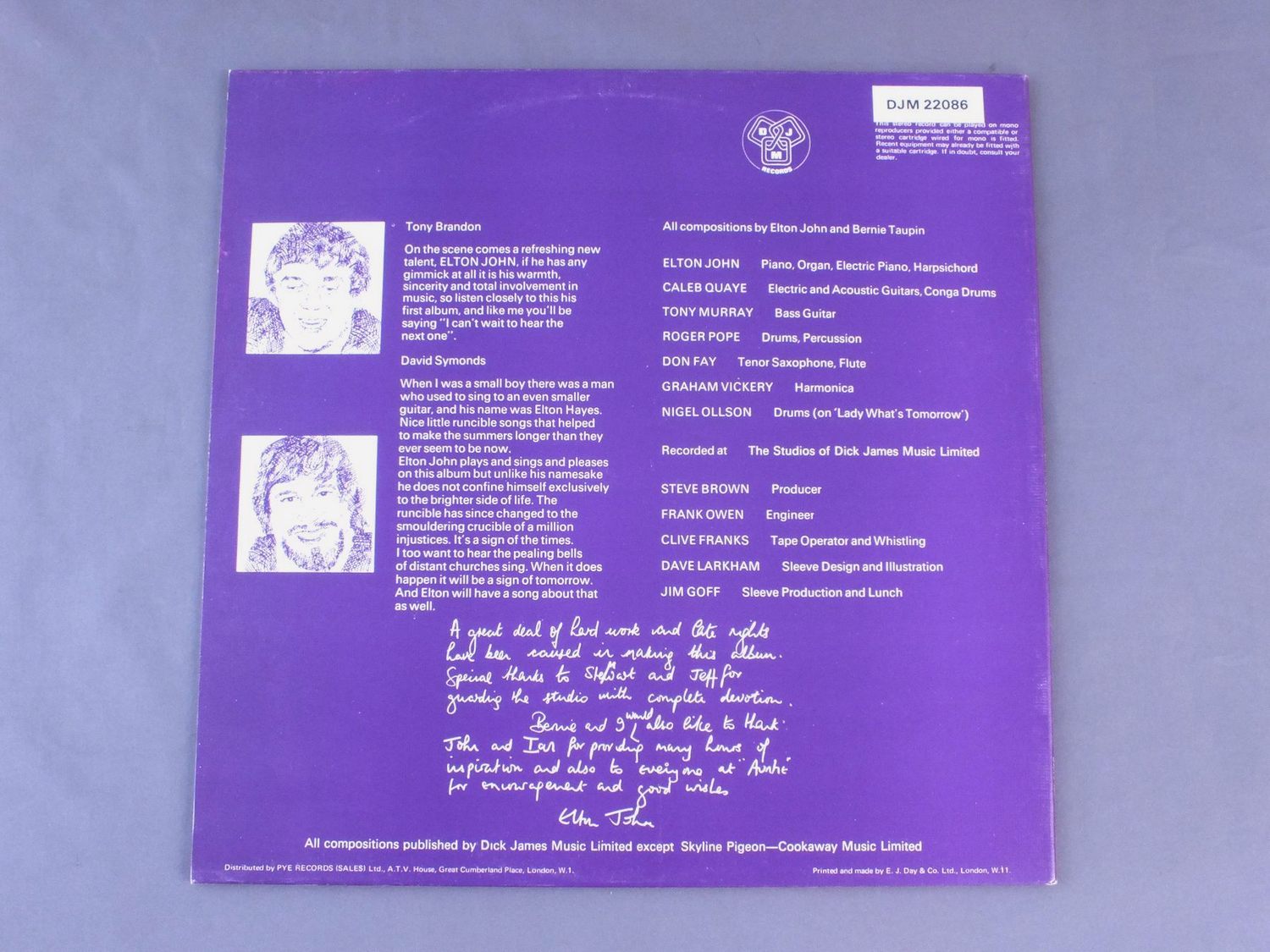 ELTON JOHN/EMPTY SKY DJLPS403 製造国:英国盤 / Media:LPMatrix:A2-◇H B-3-◇H外観:EX-盤の状態:EX+ 価格(税込):¥4,400(売約済) 送料 7inch:定形外郵便 360円~LP:定形外郵便 660円~送料は、注文の最終画面で確認頂けます。 > > ELTON JOHN/EMPTY SKY 外観 (EX-)特記事項:背スレやヘリスレが少し。ジャケは艶消しの柔らかい素材。エンボスは有りません。見開きも含めて全体的にスレやスリキズ、よごれ等は少ない印象です。外観EX-の共通説明:ダメージ軽度~多少。 中古品としては普通の状態。シミ、ヨゴレ、スレなど軽く~多少。 盤の状態 (EX+)特記事項:薄いスリキズ・スレ少しある程度。音に出そうなものもなく一見してきれいな状態です。曲間など、静かなところを中心に聴いて見ましたが、チリノイズ少ないきれいな再生具合でした。盤EX+の共通説明:盤面の極薄いスリキズ、スレ少し程度 音に出そうなものは無いように見える(極軽微なソフトティック音は除く)。 Tweet それぞれの画像をクリックすると、大きい写真が見られます こちらの商品もお勧めです 3,850円 VAN MORRISON / PERIOD OF TRANSITION 4,950円 RORY GALLAGHER / STORY SO FAR 3,300円 CLIFF RICHARD / CLIFF`S HIT ALBUM 7,700円 VAN MORRISON / T. B. SHEETS 6,600円 CLIFF RICHARD / DON`T STOP ME NOW 4,950円 RORY GALLAGHER / AGAINST THE GRAIN 4,400円 ROGER GLOVER / MASK 4,180円 NILLSON / SANDMAN