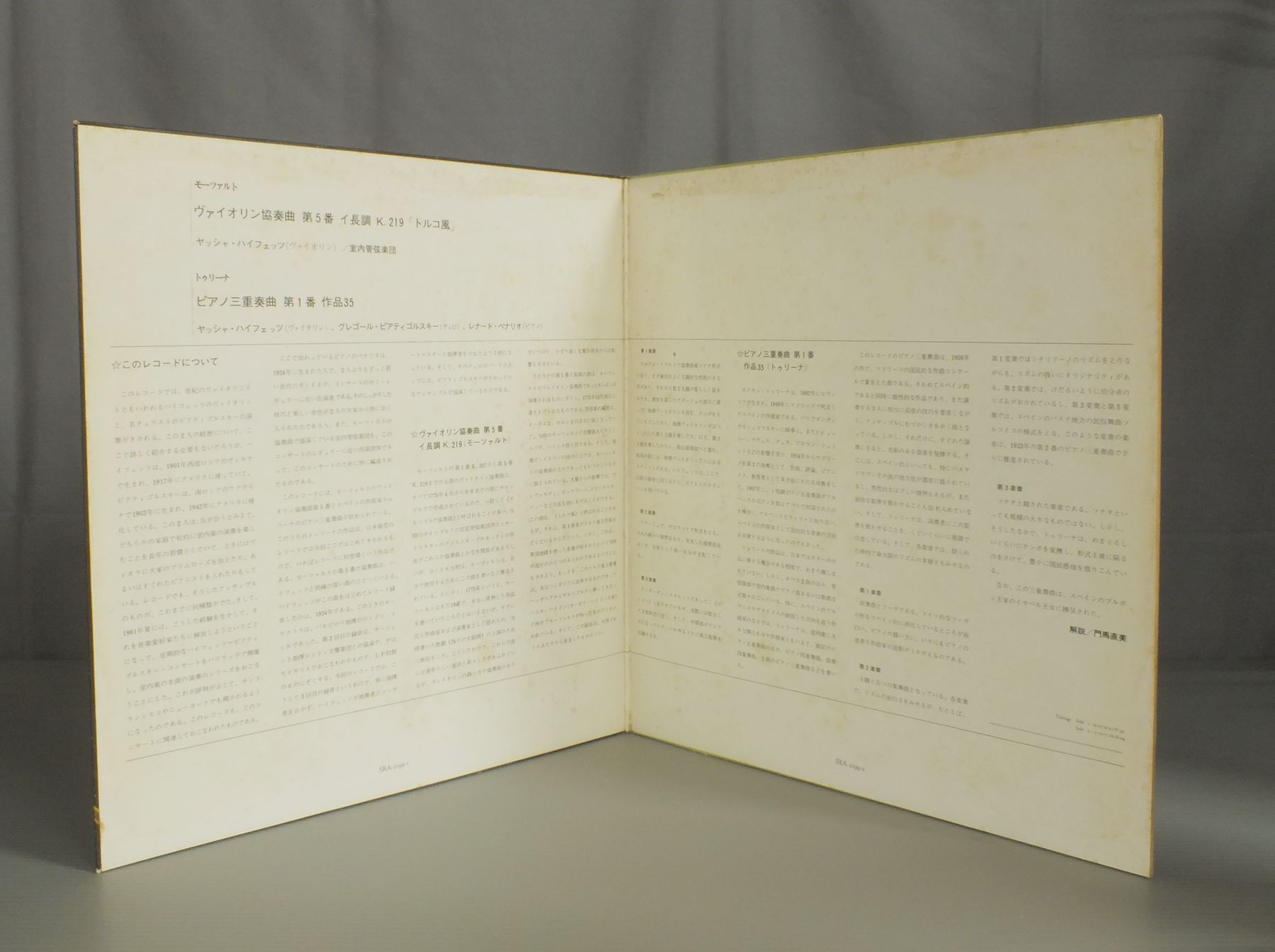 HEIFETZハイフェッツ ピアティゴルスキー ペナリオ/MOZART VIOLIN CONC. NO5モーツァルト ヴァイオリン協奏曲 第5番 トルコ風 SRA 2199 製造国:日本盤 / Media:LP外観:EX-盤の状態:EX+ 価格(税込):¥330(売約済) 送料 7inch:定形外郵便 360円~LP:定形外郵便 660円~送料は、注文の最終画面で確認頂けます。 > > HEIFETZ/MOZART VIOLIN CONC. NO5 外観 (EX-)特記事項:ヘリスレ有り。見開きも含めてシミ有り。外観EX-の共通説明:ダメージ軽度~多少。 中古品としては普通の状態。シミ、ヨゴレ、スレなど軽く~多少。 盤の状態 (EX+)特記事項:薄いスリキズ・スレ少し。一見してきれいな状態です。盤EX+の共通説明:盤面の極薄いスリキズ、スレ少し程度 音に出そうなものは無いように見える(極軽微なソフトティック音は除く)。 その他:白見本盤 Tweet それぞれの画像をクリックすると、大きい写真が見られます こちらの商品もお勧めです 990円 KARAJANカラヤン / DVORAK-SYM. NO8ドヴォルザーク-交響曲 第8番 1,320円 WALTER - COLUMBIA SYM. ORCH.ワルター - コロンビア交響楽団 / MOZART - SYM. NO40 & NO41モーツァルト 交響曲第40番 & 41番 ジュピター 990円 FJELDSTADフィエルスタード / GRIEG PEER GYNTグリーグ `ペール・ギュント`-付帯音楽 770円 COLLEGIUM AUREUMコレギウム・アウレウム合奏団 / MOZART - SYM.N G-MOLL KV550モーツアルト - 交響曲第40番33番 990円 ORMANDYユージン・オーマンディ / WAGNER-ORCH.L WORKSワーグナー名曲集 990円 BARENBOIM - ENGLISH CHAMBER ORCHESTRAバレンボイム - イギリス室内管弦楽団 / BEETHOVEN - PIANO CONCERTOベートーヴェン - ピアノ協奏曲 990円 GRAFFMAN - BERNSTEIN - NEW YORK PHIL.グラフマン / RACHMANINOFF - PIANO CONCERO No2ラフマニノフ ピアノ協奏曲第2番ハ短調 990円 KARAJANカラヤン / BEST 1500 BERLIOZ-SMPHONIE FANTASTIQUEカラヤン・ベスト・1500 ベルリオーズ-幻想交響曲