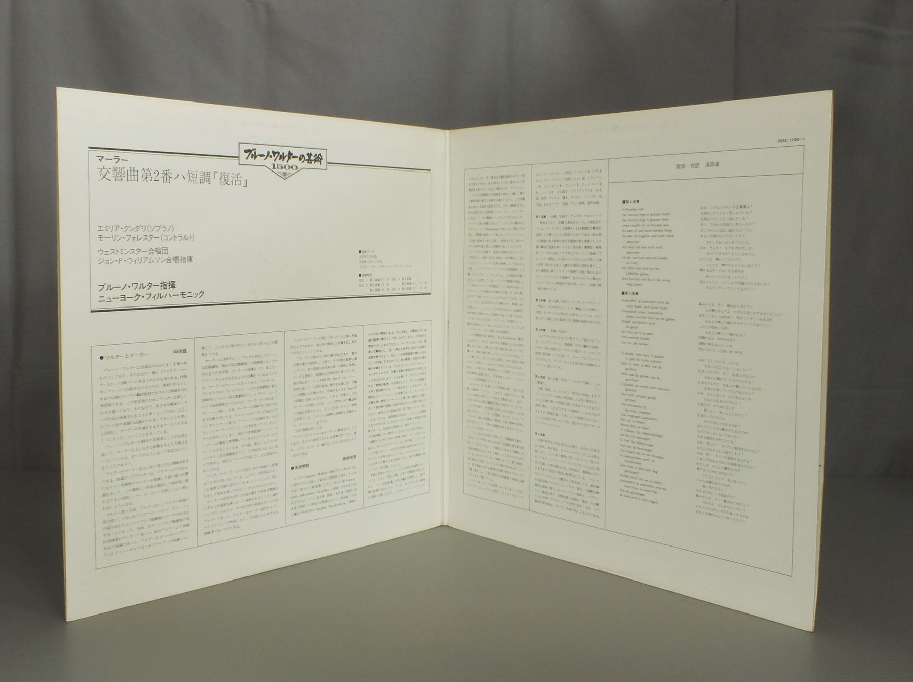 WALTERワルター/MAHLER SYM. NO2 RESURRECTIONマーラー 交響曲第2番 復活 30AC1290-1 製造国:日本盤 / Media:LP外観:EX盤の状態:EX+ 価格(税込):¥1,320(売約済) 送料 7inch:定形外郵便 360円~LP:定形外郵便 660円~送料は、注文の最終画面で確認頂けます。 > > WALTER/MAHLER SYM. NO2 RESURRECTION 外観 (EX)特記事項:ジャケ表面にシミやよごれ有り。外観EXの共通説明:ダメージが限定的。中古品としては保存状態がよい方。シミ、ヨゴレ、スレ 少し~軽度。 盤の状態 (EX+)特記事項:薄いスリキズ・スレ少し。一見してきれいな状態です。盤EX+の共通説明:盤面の極薄いスリキズ、スレ少し程度 音に出そうなものは無いように見える(極軽微なソフトティック音は除く)。 Tweet それぞれの画像をクリックすると、大きい写真が見られます こちらの商品もお勧めです 1,430円 KARAJAN - BERLIN PHILHARMONIC ORCHESTRAカラヤン - ベルリンフィルハーモニー管弦楽団 / TCHAIKOVSKY - SYMPHONY NO.5チャイコフスキー - 交響曲第5番 1,320円 KARAJAN - BERLIN PHIL.カラヤン - ベルリンフィル / BRUCKNER SYMPHONY NO.4ブルックナー ロマンティック 990円 KARAJAN - BERLIN PHILHARMONIC ORCH.カラヤン - ベルリン・フィルハーモニー管弦楽団 / BEETHOVEN - SYMPHONY No6 PASTORALEベートーヴェン - 交響曲第6番 田園 990円 MUNCHミュンシュ / MENDELSSOHN SYM. NO4 `ITALIANメンデルスゾーン 交響曲第4番`イタリア`&第5番`宗教改革` 1,320円 BOHM - VIENNA PHILHARMONICベーム - ウィーン・フィルハーモニー管弦楽団 / BRUCKNER - SYMPHONY NO.4 ROMANTICブルックナー・交響曲第4番ロマンティック 1,320円 WALTER - COLUMBIA SYMPHONY ORCHESTRAワルター - コロンビア交響楽団 / BEETHOVEN - SYMPHONY NO6 PASTORALEベートーヴェン交響曲第6番 1,320円 KLEMPERER - NEW PHILHARMONIA ORCH.クレンペラー - ニュー・フィルハーモニア管弦楽団 / BRUCKNER - SYM. NO8 (NOWAK EDITION)ブルックナー - 交響曲 第8番 (ノヴァーク版) 990円 KARAJAN - BERLIN PHIL.カラヤン - ベルリンフィルハーモニー管弦楽団 / DVORAK FROM THE NEW WORLDドボルザーク - 新世界