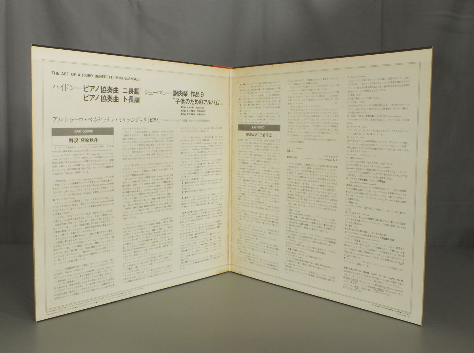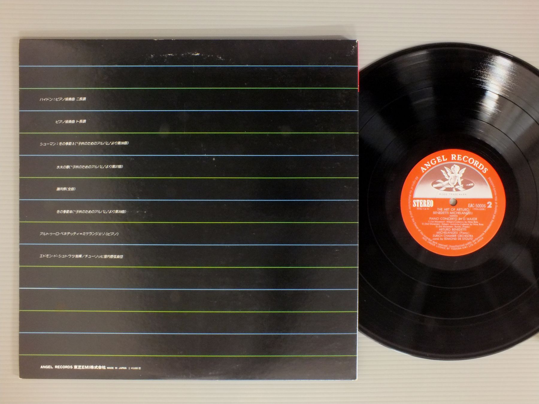 MICHELANGELIアルトゥーロ・ベネデッティ=ミケランジェリ/ART OF ARTURO B.-MICHELANGELIミケランジェリの芸術 ハイドン ピアノ協奏曲 &-シューマン 謝肉祭 EAC50006-7 製造国:日本盤 / Media:LP外観:EX-盤の状態:EX 価格(税込):¥770(売約済) 送料 7inch:定形外郵便 360円~LP:定形外郵便 660円~送料は、注文の最終画面で確認頂けます。 > > MICHELANGELI/ART OF ARTURO B.-MICHELANGELI 外観 (EX-)特記事項:レコードリングスレ有り。見開きにシミ。外観EX-の共通説明:ダメージ軽度~多少。 中古品としては普通の状態。シミ、ヨゴレ、スレなど軽く~多少。 盤の状態 (EX)特記事項:薄いスリキズ・スレ軽くある感じ。軽微なものの様子です。盤EXの共通説明:盤面のスリキズが薄いものが少し~軽度 音に出そうなものは無いように見える(軽微なソフトティック音は除く)。 Tweet それぞれの画像をクリックすると、大きい写真が見られます こちらの商品もお勧めです 990円 WALTER - BBC SYMPHONY ORCESTRAワルター - BBC交響楽団 / MOZART - SYMPHONY NO39モーツァルト - 交響曲 第39番 990円 BOHM - BERLIN PHIL.ベーム - ベルリン・フィル / MOZART - SYM. NO40 & 41モーツアルト交響曲第40番41番 990円 STOLZロベルト・シュトルツ / J.STRAUSS-DER SCHONEN BLAUEN DONAUJ.シュトラウス-美しく青きドナウ 990円 KARAJAN - BERLIN PHIL.カラヤン - ベルリン・フィル / BIZET - CARMEN SUITEビゼー - カルメン&アルルの女 1,320円 ACCARDO - COLIN DAVIS - LONDON SYMPHONY ORCHESTRAアッカルド - コリン・デイヴィス - ロンドン交響楽団 / SIBELIUS - VIOLIN CONCERTOシベリウス - ヴァイオリン協奏曲 1,320円 SZELL - THE CLEVELAND ORCHESTRAセル - クリーブランド管弦楽団 / R.STRAUSS - TILL EULENSPIEGEL`S MERRY PRANKSR.シュトラウス - 交響詩ティル・オイレンシュピーゲルの愉快な悪戯 1,320円 ORMANDY - PHILADELPHIA ORCH.オーマンディ - フィラデルフィア管弦楽団 / FAVORITE CLASSICAL MARCHESクラシック・マーチ集 990円 TOKYO METROPOLITAN ORCH.東京都交響楽団 / BRILLIANT ORCH. WORKS華麗なるオーケストラの響き