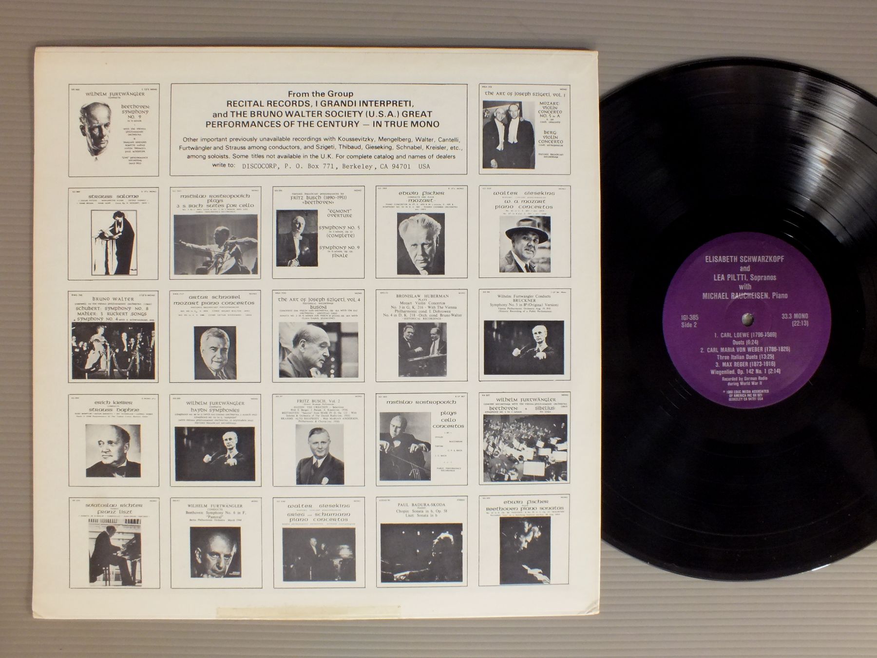SCHWARZKOPF/RECITAL LOEWE/WEBER/REGER IGI-385 製造国:米国盤 / Media:LP外観:VG+盤の状態:EX+ 価格(税込):¥3,894(売約済) 送料 7inch:定形外郵便 360円~LP:定形外郵便 660円~送料は、注文の最終画面で確認頂けます。 > > SCHWARZKOPF/RECITAL LOEWE/WEBER/REGER 外観 (VG+)特記事項:表ジャケによごれ。底抜けテープ補修有り。外観VG+の共通説明:ダメージやや有り。シミ、ヨゴレ、スレなど多少~やや多め。 盤の状態 (EX+)特記事項:薄いスリキズ・スレ少し。一見してきれいな状態です。盤EX+の共通説明:盤面の極薄いスリキズ、スレ少し程度 音に出そうなものは無いように見える(極軽微なソフトティック音は除く)。 Tweet それぞれの画像をクリックすると、大きい写真が見られます こちらの商品もお勧めです 1,650円 RICHTERカール・リヒター / BACH-WIE SCHON LEUCHTET DER MORGENSTERN. BWV1バッハ-カンタータ いとも美しい暁の星 BWV1-カンタータ キリストは死のきずなに着きたまえり BWV4 2,200円 MIRZCHULAVA / PALIASHVILY-ABSALOM&ETERYパリアシュヴィリ 歌劇『アベサロムとエテリ』 1,430円 LEPOVSEK - PARSONS / SCHUBERT - LIEDER etc 990円 BELLINI NORMA / BELLINI NORMA 1,320円 EHMANN / SCHUTZ - KLEINE GEISTLICHE KONZERTE 6LP BOXSCHUTZ - KLEINE GEISTLICHE KONZERTE 6枚組 1,430円 LOTTE LEHMANN / ALBUM 2,090円 SCHWARZKOPF / BRAHMS-UN REQUIEM ALLEMAND 1,430円 VON STADE - WAART - ROTTERDAM PHILHARMONIC ORCHESTRAフォン・シュターテ - ワールト - ロッテルダム・フィルハーモニー管弦楽団 / MOZART & ROSSINI OPERA ARIAS恋とはどんなものかしら オペラアリア集