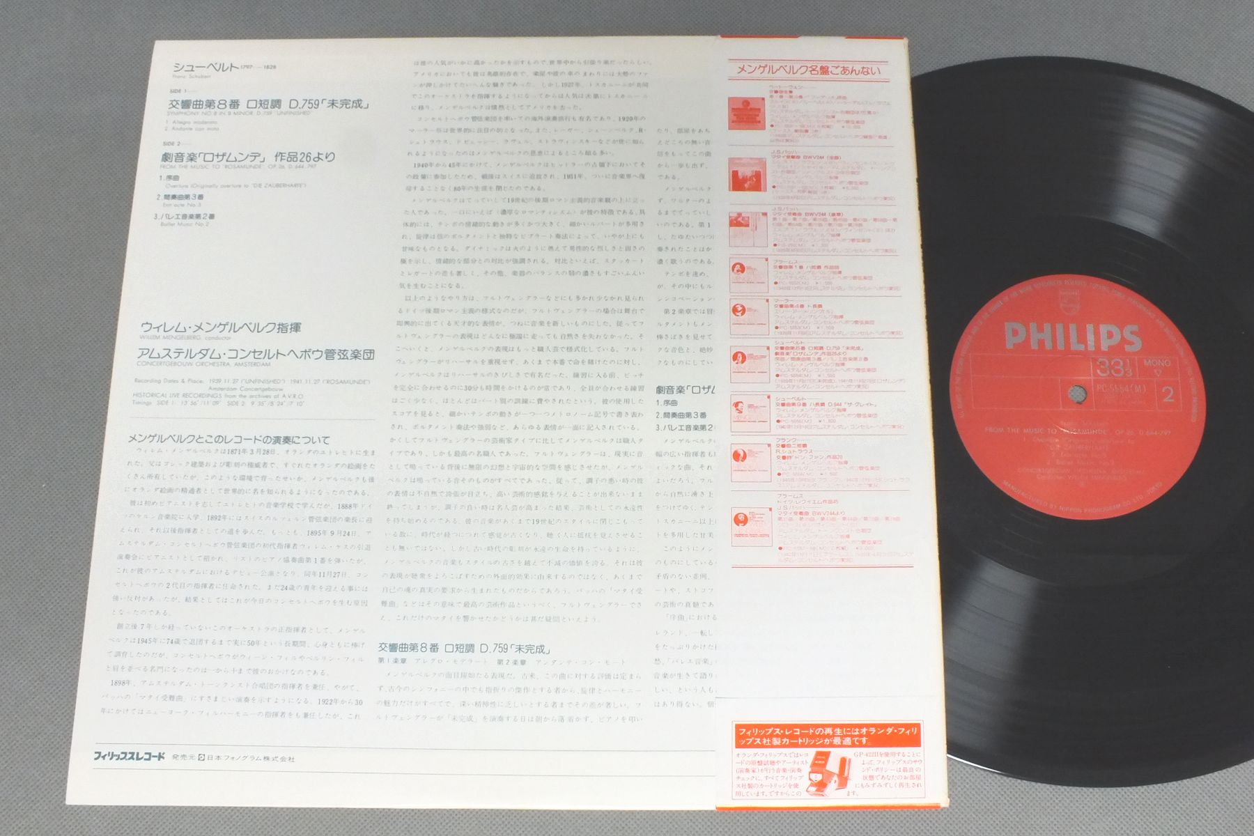 MENGELBERGウィレム・メンゲルベルク/SCHUBERT SYM. NO8シューベルト-交響曲第8番 `未完成`−劇音楽`ロザムンデ`より PC-5554 製造国:日本盤 / Media:LP外観:EX盤の状態:EX+帯:EX- 価格(税込):¥880(売約済) 送料 7inch:定形外郵便 360円~LP:定形外郵便 660円~送料は、注文の最終画面で確認頂けます。 > > MENGELBERG/SCHUBERT SYM. NO8 外観 (EX)特記事項:特記なし。外観EXの共通説明:ダメージが限定的。中古品としては保存状態がよい方。シミ、ヨゴレ、スレ 少し~軽度。 盤の状態 (EX+)特記事項:薄いスリキズ・スレ少し。一見してきれいな状態です。盤EX+の共通説明:盤面の極薄いスリキズ、スレ少し程度 音に出そうなものは無いように見える(極軽微なソフトティック音は除く)。 帯の状態 (EX-):上ヘリに僅かに切れ。 Tweet それぞれの画像をクリックすると、大きい写真が見られます こちらの商品もお勧めです 990円 COLLINSコリンズ / SIBELIUS SYM. NO2シベリウス 交響曲第2番 1,430円 ANDRE - RICHTER - MUNCHENER BACH ORCHESTRAアンドレ - リヒター - ミュンヘン・バッハオーケストラ / CONCERTOS BY TELEMANN & HANDELテレマン、ヘンデル協奏曲集 990円 KEILBERTHカイルベルト / BRUCKNER-SYM. NO9ブルックナー-交響曲 第9番 990円 KEMPEケンペ / STRAUSS `DON QULXOTE` ETC交響詩 `ドン・キホーテ` `バラの騎士`からのワルツ 990円 GILELS-ELENA GILELS-BOHMエミール・ギレリス & エレーナ・ギレリス-ベーム / MOZART KLAVIERKONZERTモーツァルト ピアノ協奏曲 第27番 他 770円 WALTERワルター / BEETHOVEN/SYM. NO5 etcベートヴェン/交響曲 5番 運命 他 1,320円 KNAPPERTSBUSH - VIENNA PHILHARMONIC ORCHESTRAクナッパーツブッシュ - ウィーンフィルハーモニー管弦楽団 / KNAPPERTSBUSH CONDUCTS BRAHMSブラームス名曲集 990円 KURT MASUR - GEWANDHOUSE ORCHESTRA LEIPZIGクルト・マズア - ライプツィヒ・ゲヴァントハウス管弦楽団 / GERSHWIN - PORGY & BESSガーシュイン - ポーギーとベス組曲