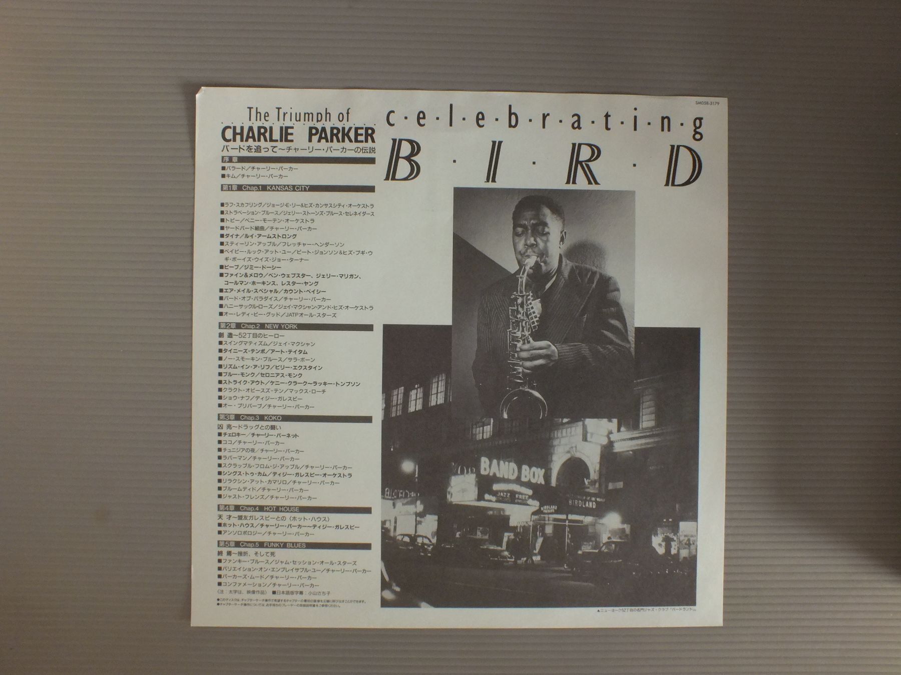 CHARLIE PARKERチャーリー・パーカー/CELEBRATING BIRD-TRIUMPH OF CHARLIE PARKERバードを追って-チャーリー・パーカーの伝説 SM058 3179 製造国:日本盤 / Media:LD外観:EX+盤の状態:EX 価格(税込):¥1,100 送料 7inch:定形外郵便 360円~LP:定形外郵便 660円~送料は、注文の最終画面で確認頂けます。 > > CHARLIE PARKER/CELEBRATING BIRD-TRIUMPH OF CHARLIE PARKER 外観 (EX+)特記事項:特記なし。外観EX+の共通説明:中古としては美品、一見してきれいでダメージが軽微。シミ、ヨゴレ、スレ有っても僅か~少し。 盤の状態 (EX)特記事項:薄いスリキズ・スレ軽くある感じ。軽微なものの様子です。盤EXの共通説明:盤面のスリキズが薄いものが少し~軽度 音に出そうなものは無いように見える(軽微なソフトティック音は除く)。 Tweet それぞれの画像をクリックすると、大きい写真が見られます こちらの商品もお勧めです 2,200円 MARC LEVIN AND HIS FREE UNIT / DRAGON SUITE 1,650円 TOSHIYUKI HONDA本田俊之 / SHANGRI-LAシャングリア(楽園)