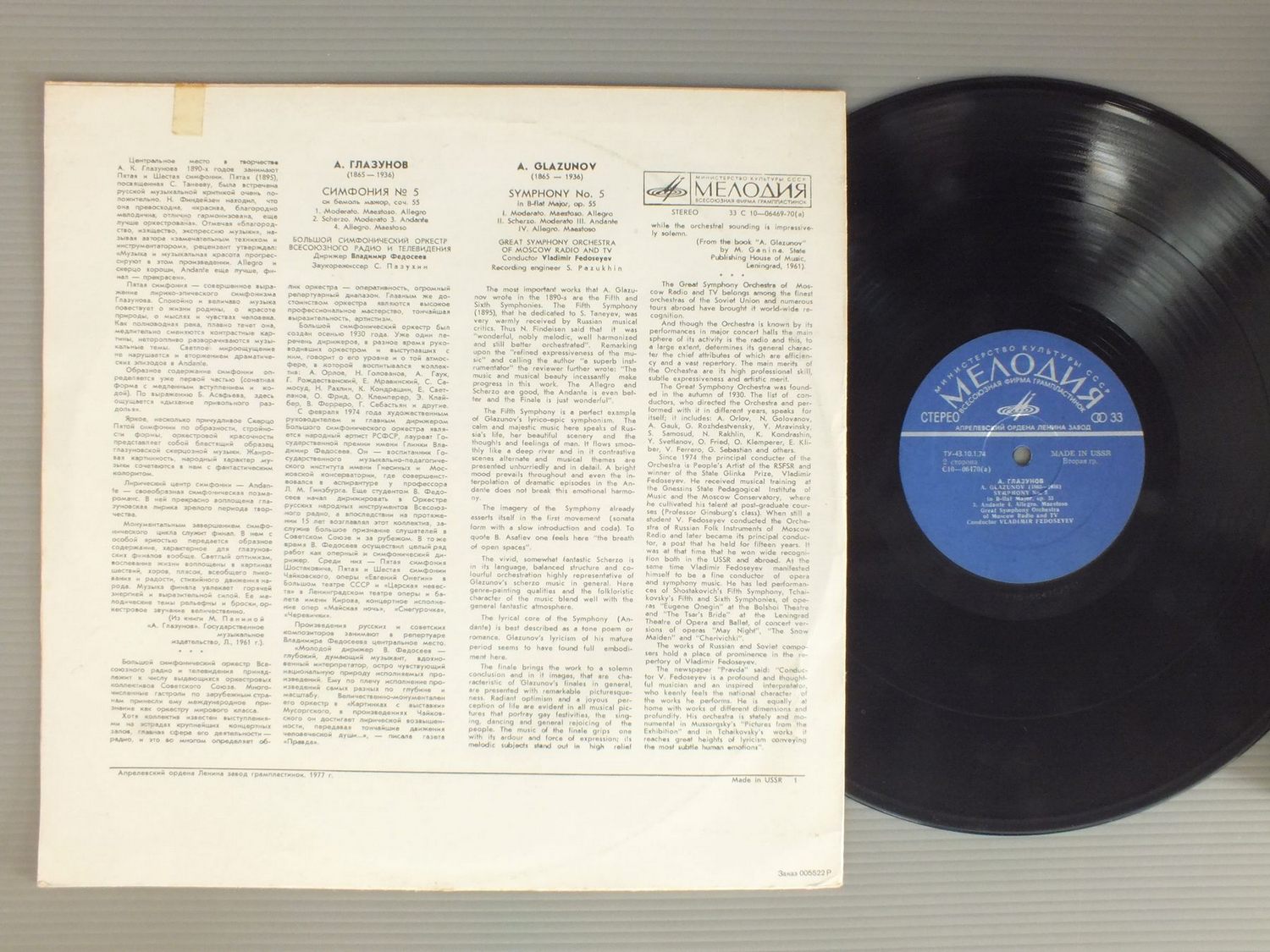 VLADIMIR FEDOSEYEV/A.GLAZUNOV-SYM. NO5 C10 06469-70 製造国:輸入盤 / Media:LP外観:EX-盤の状態:EX 価格(税込):¥5,764(売約済) 送料 7inch:定形外郵便 360円~LP:定形外郵便 660円~送料は、注文の最終画面で確認頂けます。 > > VLADIMIR FEDOSEYEV/A.GLAZUNOV-SYM. NO5 外観 (EX-)特記事項:背スレやヘリスレ有り。ジャケ表面によごれ。7裏ジャケにテープ。外観EX-の共通説明:ダメージ軽度~多少。 中古品としては普通の状態。シミ、ヨゴレ、スレなど軽く~多少。 盤の状態 (EX)特記事項:薄いスリキズ・スレ軽くある感じ。軽微なものの様子です。盤EXの共通説明:盤面のスリキズが薄いものが少し~軽度 音に出そうなものは無いように見える(軽微なソフトティック音は除く)。 その他:ロシア盤 Tweet それぞれの画像をクリックすると、大きい写真が見られます こちらの商品もお勧めです 990円 LEMKE/SHALLON / MOZART/KONZERT FOR FAGOTT 1,650円 KARAJAN / DVORAK-SYM.9 990円 FISCHER-BOHM / BEETHOVEN-CONC. NO5 L`EMPEREUR 1,320円 SOLTI / BEETHOVEN-SYM. NO3 EROICA 1,650円 STOLZ / FRANZ LEHAR DER ZAREWITSCH 990円 LEVINE / BRAHMS-SYM. NO1 1,980円 DAVIS / SIBELIUS-SYM. 1,540円 FRUHBECK DE BURGOS - NEW PHILHARMONIA ORCH. / FALLA - EL AMOR BRUJO