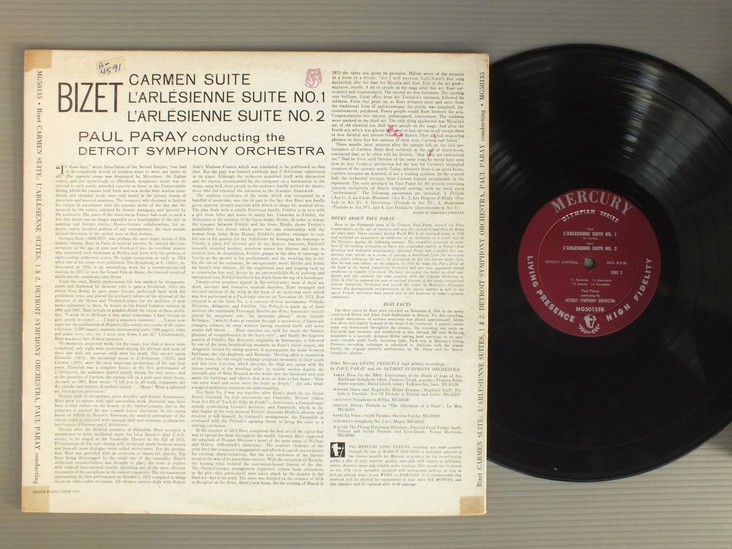 PAUL FARAY/BIZET-CARMEN SUITE MG50135 製造国:米国盤 / Media:LP外観:EX-盤の状態:EX 価格(税込):¥1,320(売約済) 送料 7inch:定形外郵便 360円~LP:定形外郵便 660円~送料は、注文の最終画面で確認頂けます。 > > PAUL FARAY/BIZET-CARMEN SUITE 外観 (EX-)特記事項:角にテープ。裏ジャケにステッカーやスタンプ。外観EX-の共通説明:ダメージ軽度~多少。 中古品としては普通の状態。シミ、ヨゴレ、スレなど軽く~多少。 盤の状態 (EX)特記事項:薄いスリキズ・スレ軽くある感じ。軽微なものの様子です。盤EXの共通説明:盤面のスリキズが薄いものが少し~軽度 音に出そうなものは無いように見える(軽微なソフトティック音は除く)。 Tweet それぞれの画像をクリックすると、大きい写真が見られます こちらの商品もお勧めです 990円 COLLEGIUM AUREUM / MOZART-SYPMHONIES-NO40 33 990円 MARIO ROSSI / DVORAK - SLAVONIC DANSES etc 1,320円 LINDER-SWAROWSKY / MOZART-4 HORN CONCERTI 880円 ANSERMET / ROUSSEL-SYM. NO3 & 4 1,210円 MUNCH - BOSTON SYM. / PROKOFIEFF - ROMEO&JULIET 990円 SANDOR / BRAHMS HUNGARIAN DANCES 1,540円 GIULINI - LOS ANGELES PHILHARMONIC ORCH / BEETHOVEN - SYM. NO3 EROICA 1,760円 KARI LOVAAS / LIEDER VON GRIEG SIBELIUS & MUSSORGSKY