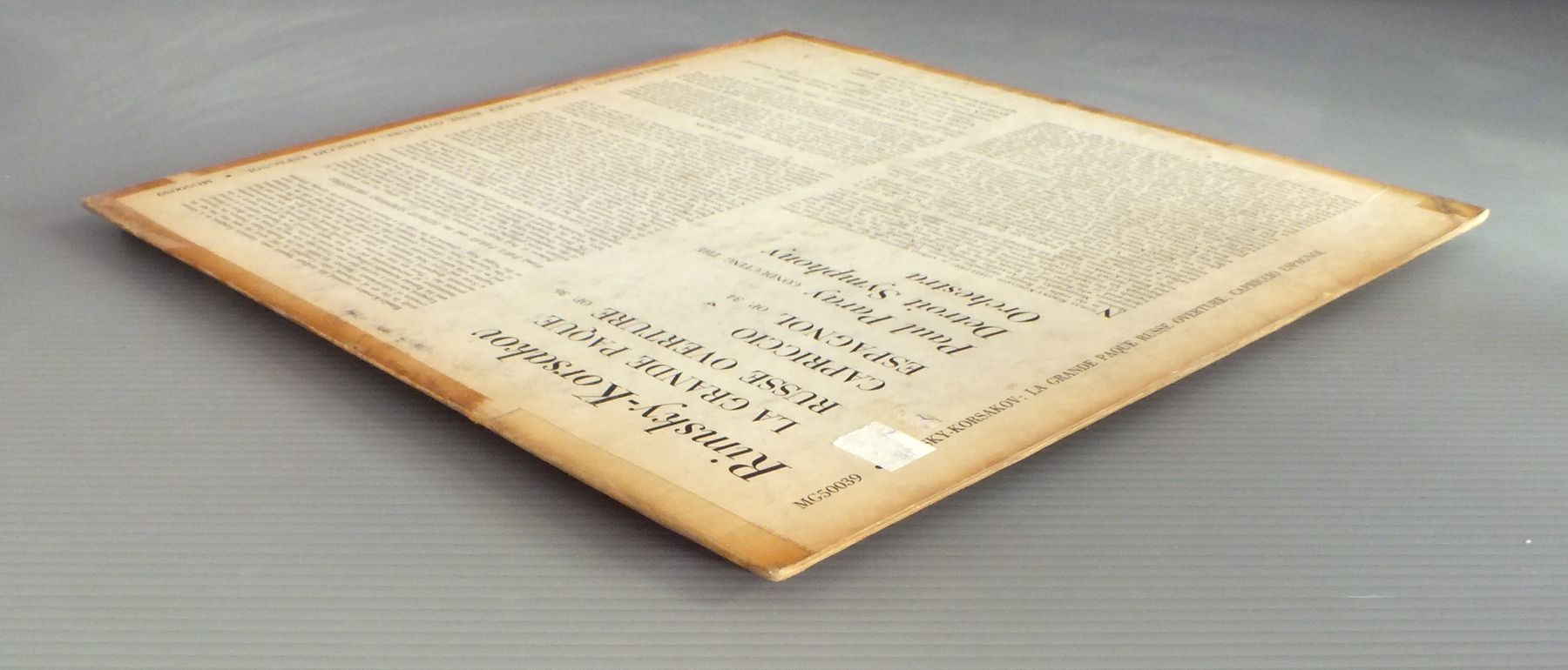PAUL PARAY/RIMSKY-KORSAKOV-CAPRICCIO ESPAGNOL MG50039 製造国:米国盤 / Media:LP外観:VG盤の状態:EX- 価格(税込):¥1,320(売約済) 送料 7inch:定形外郵便 360円~LP:定形外郵便 660円~送料は、注文の最終画面で確認頂けます。 > > PAUL PARAY/RIMSKY-KORSAKOV-CAPRICCIO ESPAGNOL 外観 (VG)特記事項:背やヘリにテープ。ステッカーやスタンプ有り。外観VGの共通説明:ダメージが見るからに多い。 盤の状態 (EX-)特記事項:薄いスリキズ・細かい表面スレ多少ある感じです。プチ出そうな所は少し。軽微なものが中心の様子です。盤EX-の共通説明:盤面のスリキズが多少有り。音に出そうなものは殆ど無いように見える~さほど気にならないぐらいの軽いプチ数カ所程度。 Tweet それぞれの画像をクリックすると、大きい写真が見られます こちらの商品もお勧めです 990円 SMETACEK / RIMSKY-KORSAKOFF-COQ D` OR SUITE- 990円 ANSERMET / RICHMOND HIGH FIDELITY 2,090円 KARAJAN / CHARMES SLAVES 1,650円 BLOOM-SZELL / STRAUSS HORNKONZERT 990円 CICCOLINI / PIANO MUSIC OF FRIK SATIE VOL4 1,430円 FURTWANGLER-FISCHER / BRAHMS -PIANO CONC. NO2 990円 BAUMGARTNER / MOZART JUBILEE EDITION 990円 ORMANDY / COPLAND-APPALACHIAN SPRING COMPLETE BALLET-BILLY THE KID