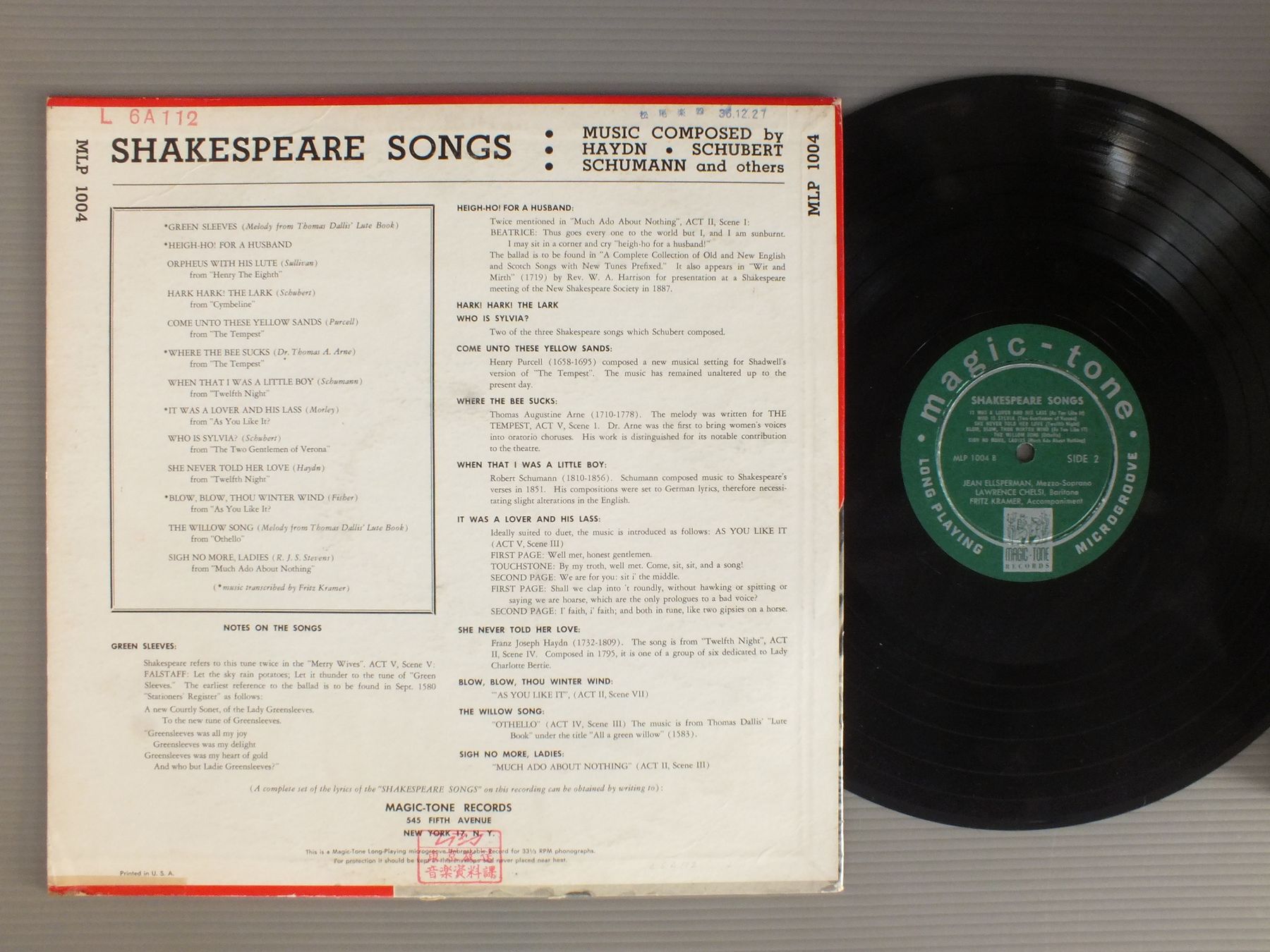 FRITZ KRAMER/SHAKESPEARE SONGS MLP1004 製造国:米国盤 / Media:LP外観:VG+盤の状態:VG+ 価格(税込):¥1,100(売約済) 送料 7inch:定形外郵便 360円~LP:定形外郵便 660円~送料は、注文の最終画面で確認頂けます。 > > FRITZ KRAMER/SHAKESPEARE SONGS 外観 (VG+)特記事項:ステッカーやスタンプ有り。底ヘリにテープ。外観VG+の共通説明:ダメージやや有り。シミ、ヨゴレ、スレなど多少~やや多め。 盤の状態 (VG+)特記事項:薄いスリキズ・細かいスレやや多め。周期的にプチ出そうな小キズ、線キズも両面数カ所有り。全体的には軽微なものが中心です。少し聴いてみましたが、音自体はしっかりクリアーに鳴っているようでした。盤VG+の共通説明:盤面にスリキズが多少~やや有り、音に出そうなものも多少ある。 Tweet それぞれの画像をクリックすると、大きい写真が見られます こちらの商品もお勧めです 990円 FRITZ BUSCH / MOZART-DON GIOVANNI 3LP BOX 2,420円 EDGAR FLEET / GENTILL IHESU 2,090円 JOAN SUTHERLAND / WORLD OF JOAN SUTHERLAND 2,420円 JOHN PRITCHARD / DONIZETTI-LUCIA DI LAMMERMOOR 990円 SERMA KURZ / SERMA KURZ 1,650円 LEONHARDT / MUSIK UND IHRE ZEIT-SCHUTZ 1,320円 SCHWARZKOPF-KARAJAN / MOZART-LE NOZZE DI FIGARO 990円 VERONIKA KINCSES / SONGS FROM OPERETTAS