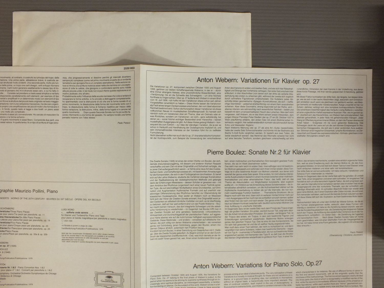 POLLINI/WEBERN-VARIATIONEN 2530 803 製造国:独盤 / Media:LP外観:EX盤の状態:EX+ 価格(税込):¥3,190(売約済) 送料 7inch:定形外郵便 360円~LP:定形外郵便 660円~送料は、注文の最終画面で確認頂けます。 > > POLLINI/WEBERN-VARIATIONEN 外観 (EX)特記事項:特記なし。外観EXの共通説明:ダメージが限定的。中古品としては保存状態がよい方。シミ、ヨゴレ、スレ 少し~軽度。 盤の状態 (EX+)特記事項:薄いスリキズ・スレ少し。一見してきれいな状態です。盤EX+の共通説明:盤面の極薄いスリキズ、スレ少し程度 音に出そうなものは無いように見える(極軽微なソフトティック音は除く)。 Tweet それぞれの画像をクリックすると、大きい写真が見られます こちらの商品もお勧めです 990円 GEOFFREY BURGON - CHOIR OF CHICHESTER CATHEDRAL / CATHEDRAL MUSIC 1,980円 ELSE C. KRAUSエルゼ・C・クラウス / SCHONBERG DAS GESAMTE KLAVIERWERK 1,430円 UMBERTO BERRETTONI / LA BOHEME 3,080円 SAWALLISCHサヴァリッシュ / CARL ORFF/DER MOND 1,650円 DMITRI KABALEVSKY / COLAS BREUGNON & COMEDIANS SUITES 2,200円 BOULEZ / SCHOENBERG/PIERROT LUNAIRE 990円 ULSTER ORCH.-THOMSON / BAX-TONE POEMS-NOVEMBER WOODS etc. 1,540円 JULIUS BAKER & ANTHONY MAKAS / CONTEMPORARY SONATAS FOR FLUTE & PIANO