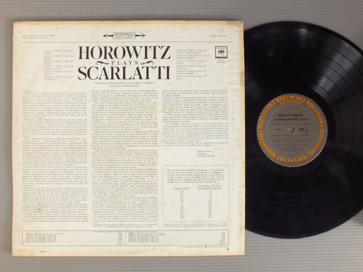HOROWITZ/HOROWITZ PLAYS SCARLATTI MS6658 製造国:米国盤 / Media:LP外観:VG盤の状態:EX 価格(税込):¥770(売約済) 送料 7inch:定形外郵便 360円~LP:定形外郵便 660円~送料は、注文の最終画面で確認頂けます。 > > HOROWITZ/HOROWITZ PLAYS SCARLATTI 外観 (VG)特記事項:シミ多いです。表ジャケに書き込み。外観VGの共通説明:ダメージが見るからに多い。 盤の状態 (EX)特記事項:薄いスリキズ・スレ軽くある感じ。軽微なものの様子です。盤EXの共通説明:盤面のスリキズが薄いものが少し~軽度 音に出そうなものは無いように見える(軽微なソフトティック音は除く)。 Tweet それぞれの画像をクリックすると、大きい写真が見られます こちらの商品もお勧めです 990円 HUNGERFORD / BEETHOVEN-SONATAS OP2 NO1 & OP2 NO2. 990円 RICHTER / BACH-GOTTES ZEIT IST DIE ALLERBESTE ZEIT 990円 JEAN PIERRE RAMPAL / BACH-THE COMPLETE FLUTE SONATAS 1,320円 PERLMAN&ZUKERMAN / PROKOFIEV - SONATA 990円 GABRIEL CHODOS / SCHUBERT SONATA 990円 CHRISTOPHER PARKENING / IN THE CLASSIC STYLE 990円 GIESEKING / GIESEKING SPIELT BRAHMS 990円 GEORGE LONDON-THOMAS SCHIPPERS / MUSSORGSKY-PICTURES AT AN EXHIBITION-BORIS GODUNOV HIGHLIGHTS