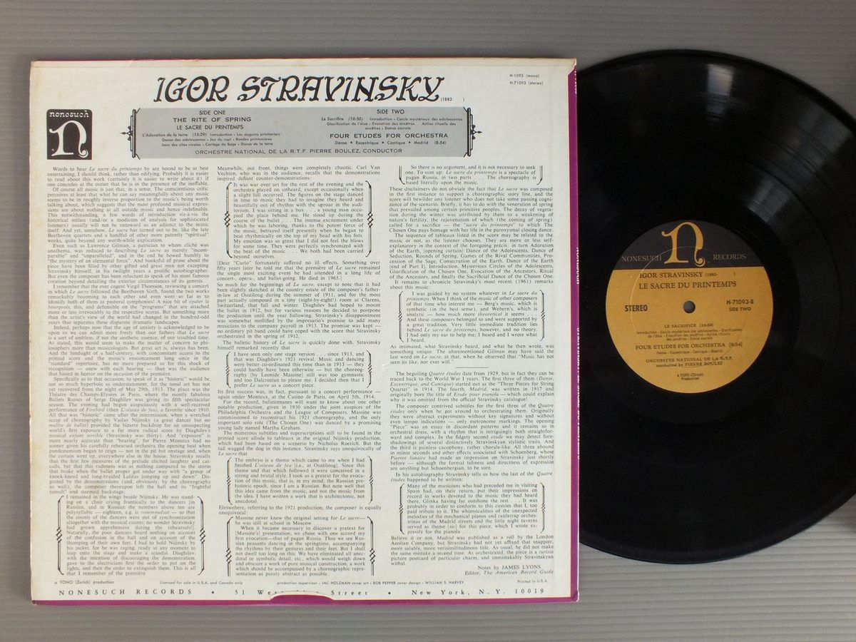 BOULEZ/STRAVINSKY-LE SACRE DU PRINTEMPS H71093 製造国:米国盤 / Media:LP外観:EX盤の状態:EX 価格(税込):¥1,320(売約済) 送料 7inch:定形外郵便 360円~LP:定形外郵便 660円~送料は、注文の最終画面で確認頂けます。 > > BOULEZ/STRAVINSKY-LE SACRE DU PRINTEMPS 外観 (EX)特記事項:裏ジャケにシミ有。外観EXの共通説明:ダメージが限定的。中古品としては保存状態がよい方。シミ、ヨゴレ、スレ 少し~軽度。 盤の状態 (EX)特記事項:薄いスリキズ・スレ軽くある感じ。軽微なものの様子です。盤EXの共通説明:盤面のスリキズが薄いものが少し~軽度 音に出そうなものは無いように見える(軽微なソフトティック音は除く)。 Tweet それぞれの画像をクリックすると、大きい写真が見られます こちらの商品もお勧めです 990円 BUMBRY-FRUHBECK DE BURGOS / BIZET-CARMEN HIGHLIGHTS 1,320円 MUTI / FRANCK-SYM. 990円 MARRINER / ACADEMY OF ST MARTIN 1,980円 KARAJAN etc / MOZART-KONZERTE FUR BLASER- 990円 FISTOULARI / ADAM-GISELLE 1,320円 PIATIGORSKY - MUNCH - BOSTON SYMPHONY ORCHESTRA / DOVORAK - CELLO CONCERTO 990円 MUNCH / PISTON-SYM. NO6 990円 HANS-JURGUEN WALTHER / VERY BEST OF WAGNER