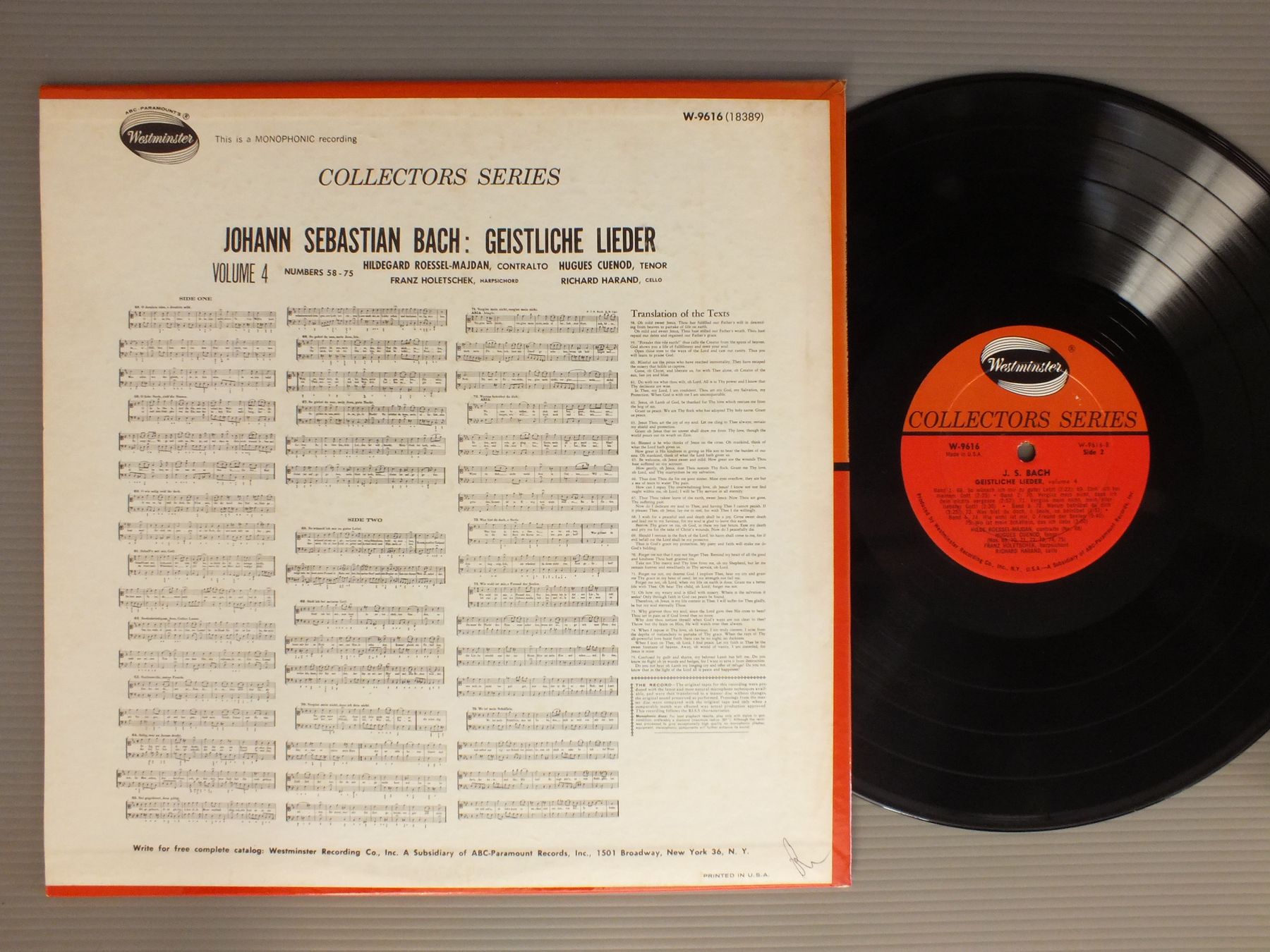 ROESSEL-MAJDAN/BACH-GEISTLICHE LIEDER VOL 4 W9616 製造国:米国盤 / Media:LP外観:EX盤の状態:EX 価格(税込):¥1,320(売約済) 送料 7inch:定形外郵便 360円~LP:定形外郵便 660円~送料は、注文の最終画面で確認頂けます。 > > ROESSEL-MAJDAN/BACH-GEISTLICHE LIEDER VOL 4 外観 (EX)特記事項:ジャケ表面にシミやよごれ有り。外観EXの共通説明:ダメージが限定的。中古品としては保存状態がよい方。シミ、ヨゴレ、スレ 少し~軽度。 盤の状態 (EX)特記事項:薄いスリキズ・スレ軽くある感じ。軽微なものの様子です。盤EXの共通説明:盤面のスリキズが薄いものが少し~軽度 音に出そうなものは無いように見える(軽微なソフトティック音は除く)。 Tweet それぞれの画像をクリックすると、大きい写真が見られます こちらの商品もお勧めです 990円 RAPHAEL TERRONI - MICHAEL PONDER / SIR LENNOX BERKELEY 990円 VIENNA PHILHARMONIA QUINTET / DVORAK - QUINTET NO3-BAGATELLES 1,430円 MARRINER / TRIBUTE TO HOLLAND 1,210円 RUDOLF BAUMGARTNER - FESTIVAL STRINGS LUCERNEバウムガルトナー - ルツェルン音楽祭管弦合奏団 / BACH TRIPELKONZERTバッハ - フルート ヴァイオリン チェンバロ 弦と通奏低音のための協奏曲 770円 KASANDJIEV / CLASSIC AND CONTEMPORARY 1 1,650円 DEMUS / SCHUBERT-FORELLEN-QUINTET 1,870円 CHARLES GROVES / JOHN WILLIAMS PLAYS TWO GUITAR CONCERTOS 990円 ELISABETH SPEISER / HANDEL - NINE GERMAN ARIAS