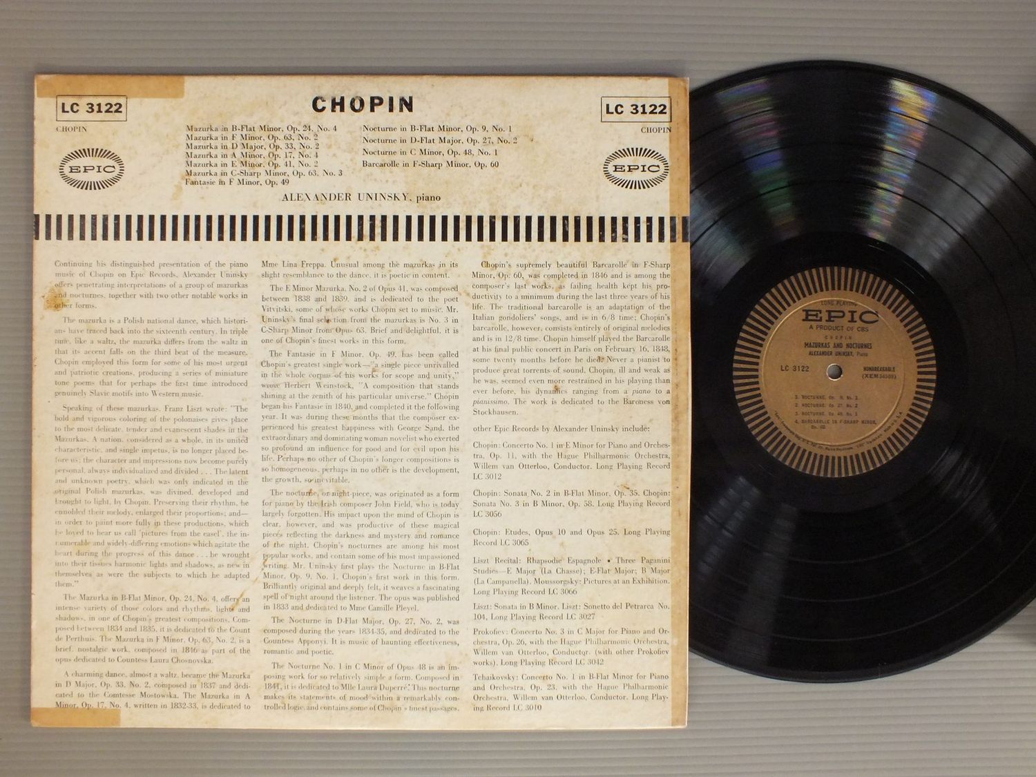 ALEXANDER UNINSKY/CHOPIN-MAZURKAS&NOCTURNES LC3122 製造国:米国盤 / Media:LP外観:VG+盤の状態:EX- 価格(税込):¥770(売約済) 送料 7inch:定形外郵便 360円~LP:定形外郵便 660円~送料は、注文の最終画面で確認頂けます。 > > ALEXANDER UNINSKY/CHOPIN-MAZURKAS&NOCTURNES 外観 (VG+)特記事項:ジャケ表面によごれ。背やヘリにテープ。外観VG+の共通説明:ダメージやや有り。シミ、ヨゴレ、スレなど多少~やや多め。 盤の状態 (EX-)特記事項:薄いスリキズ・細かい表面スレ多少ある感じです。プチ出そうな所は少し。軽微なものが中心の様子です。盤EX-の共通説明:盤面のスリキズが多少有り。音に出そうなものは殆ど無いように見える~さほど気にならないぐらいの軽いプチ数カ所程度。 Tweet それぞれの画像をクリックすると、大きい写真が見られます こちらの商品もお勧めです 990円 GIESEKING / DEBUSSY-FIFTEEN PIANO PIECES 1,210円 FERNANDO VALENTI / SCARLATTI - SONATA FOR HARPSICHORD VOL.3 990円 PADEREWSKI / PADEREWSKI-VOL5 990円 ANDRE WATTS / LISZT-SONATA- THE SIX PAGANINI ETUDES 990円 WALCHAヴァルヒャ / BACH ORGEL-BUCHLEIN 1,980円 WEISSENBERG / BACH PARTITA NO5 & NO7 1,430円 HOROWITZ / LIST SONATE EN SI MINEUR 990円 LIONEL ROGG/ZURICH / BACH/ORGAN WORKS VOLUME 3