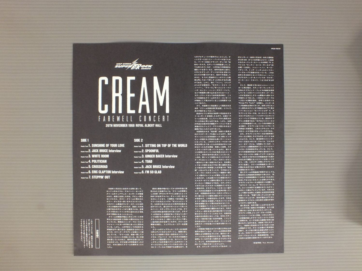 CREAMクリーム/FAREWELL CONCERTクリーム-伝説公演(完全版) VPLP70119 製造国:日本盤 / Media:LD外観:EX盤の状態:EX+帯:EX 価格(税込):¥1,100 送料 7inch:定形外郵便 360円~LP:定形外郵便 660円~送料は、注文の最終画面で確認頂けます。 新規レコード > 今週の入荷分 > CREAM/FAREWELL CONCERT 外観 (EX)特記事項:特記なし。外観EXの共通説明:ダメージが限定的。中古品としては保存状態がよい方。シミ、ヨゴレ、スレ 少し~軽度。 盤の状態 (EX+)特記事項:薄いスリキズ・スレ少し。一見してきれいな状態です。盤EX+の共通説明:盤面の極薄いスリキズ、スレ少し程度 音に出そうなものは無いように見える(極軽微なソフトティック音は除く)。 帯の状態 (EX):特記なし。 Tweet それぞれの画像をクリックすると、大きい写真が見られます こちらの商品もお勧めです