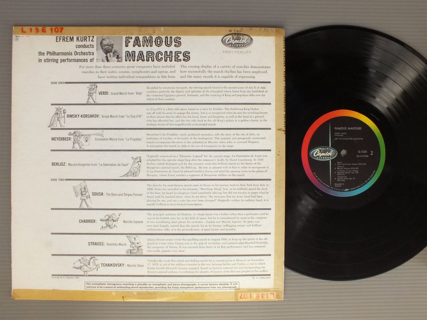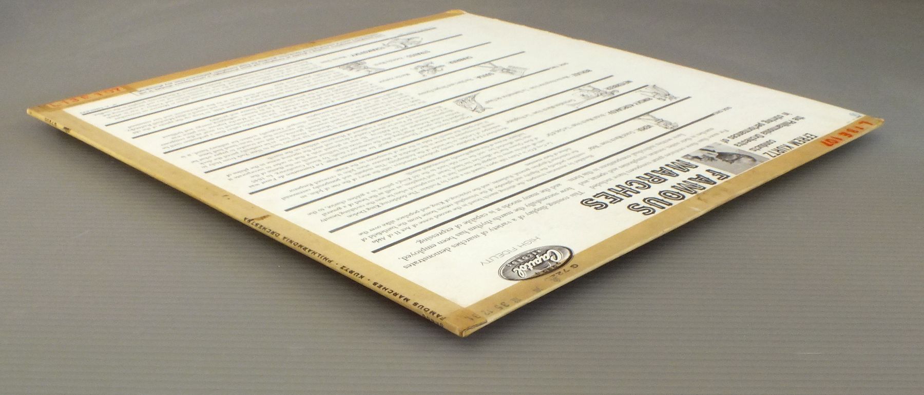 KURTZ/FAMOUS MARCHES G7220 製造国:米国盤 / Media:LP外観:VG+盤の状態:EX 価格(税込):¥1,320(売約済) 送料 7inch:定形外郵便 360円~LP:定形外郵便 660円~送料は、注文の最終画面で確認頂けます。 > > KURTZ/FAMOUS MARCHES 外観 (VG+)特記事項:背やヘリにテープ。裏ジャケにステッカーやスタンプ。外観VG+の共通説明:ダメージやや有り。シミ、ヨゴレ、スレなど多少~やや多め。 盤の状態 (EX)特記事項:薄いスリキズ・スレ軽くある感じ。軽微なものの様子です。盤EXの共通説明:盤面のスリキズが薄いものが少し~軽度 音に出そうなものは無いように見える(軽微なソフトティック音は除く)。 Tweet それぞれの画像をクリックすると、大きい写真が見られます こちらの商品もお勧めです 990円 MONTEUX / STRAVINSKY SACRE DU PRINTEMPS 1,540円 KARAJAN - BERLINER PHILHARMONIKER / SIBELIUS - SYM. NO5 2,420円 ANSERMET / BERLIOZ OVERTURES 990円 BOULT / VAUGHAN WILLIAMS-SYM. NO4-NORFOLK RHAPSODY NO1 1,540円 ABBADO - LONDON SYMPHONY ORCHESTRAアバド - ロンドン交響楽団 / MOZART - SYMPHONY NO.40モーツァルト - 交響曲第40番 2,420円 BOHM / STRAUSS - ARIADNE AUF NAXOSR.シュトラウス - ナクソス島のアリアドネ 1,650円 BOHM / STRAUSS-ELEKTRA 990円 LENOX SQ REIMONDI-WYNER / EHUDI WYNER CONC.