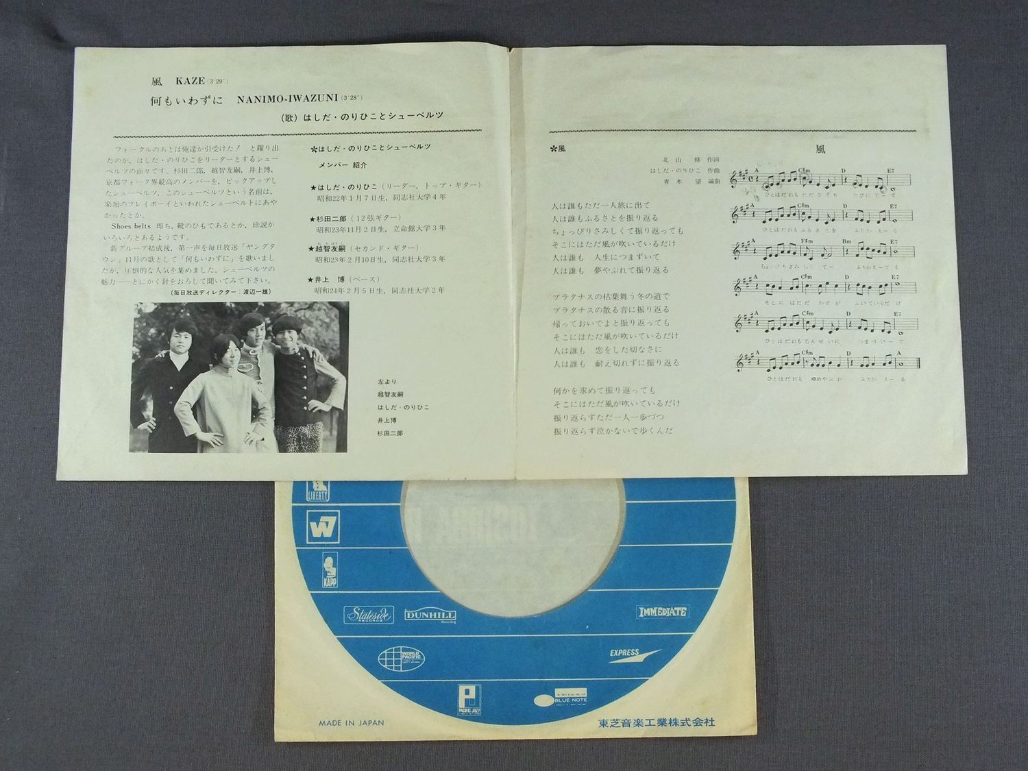 NORIHIKO HASHIDA & THE SHOEBELTSはしだのりひことシューベルツ/KAZE風 EP1132 製造国:日本盤 / Media:7inch外観:EX-盤の状態:EX 価格(税込):¥385 送料 7inch:定形外郵便 360円~LP:定形外郵便 660円~送料は、注文の最終画面で確認頂けます。 > > NORIHIKO HASHIDA & THE SHOEBELTS/KAZE 外観 (EX-)特記事項:裏ジャケや見開きにシミやよごれ。ヨレ有り。外観EX-の共通説明:ダメージ軽度~多少。 中古品としては普通の状態。シミ、ヨゴレ、スレなど軽く~多少。 盤の状態 (EX)特記事項:薄いスリキズ・スレ軽くある感じ。軽微なものの様子です。盤EXの共通説明:盤面のスリキズが薄いものが少し~軽度 音に出そうなものは無いように見える(軽微なソフトティック音は除く)。 Tweet それぞれの画像をクリックすると、大きい写真が見られます こちらの商品もお勧めです 1,320円 NEKO猫 / NEKO猫 660円 KEMEケメ / KEME VOL.4時が示すもの ケメ-VOL.4 880円 N.S.Pニュー・サディスティック・ピンク / N.S.P. 2N.S.P. II 2,200円 TAKUROU YOSHIDA吉田拓郎 / ON STAGEオン・ステージ 1,210円 NOBUYASU OKABAYASHI岡林信康 / OOINARU ISAN大いなる遺産 2,200円 YUTAKA SADOYAMA佐渡山豊 / MOTTO CHIKAKUHEもっと近くへ 770円 JIRO SUGITA杉田二郎 / DAIMEI NO NAI AI NO UTA題名のない愛の唄 1,320円 JIRO`Sジローズ / FOR THE LOVE & YOU JIRO`S 1ジローズ登場 戦争を知らない子供たち 赤盤
