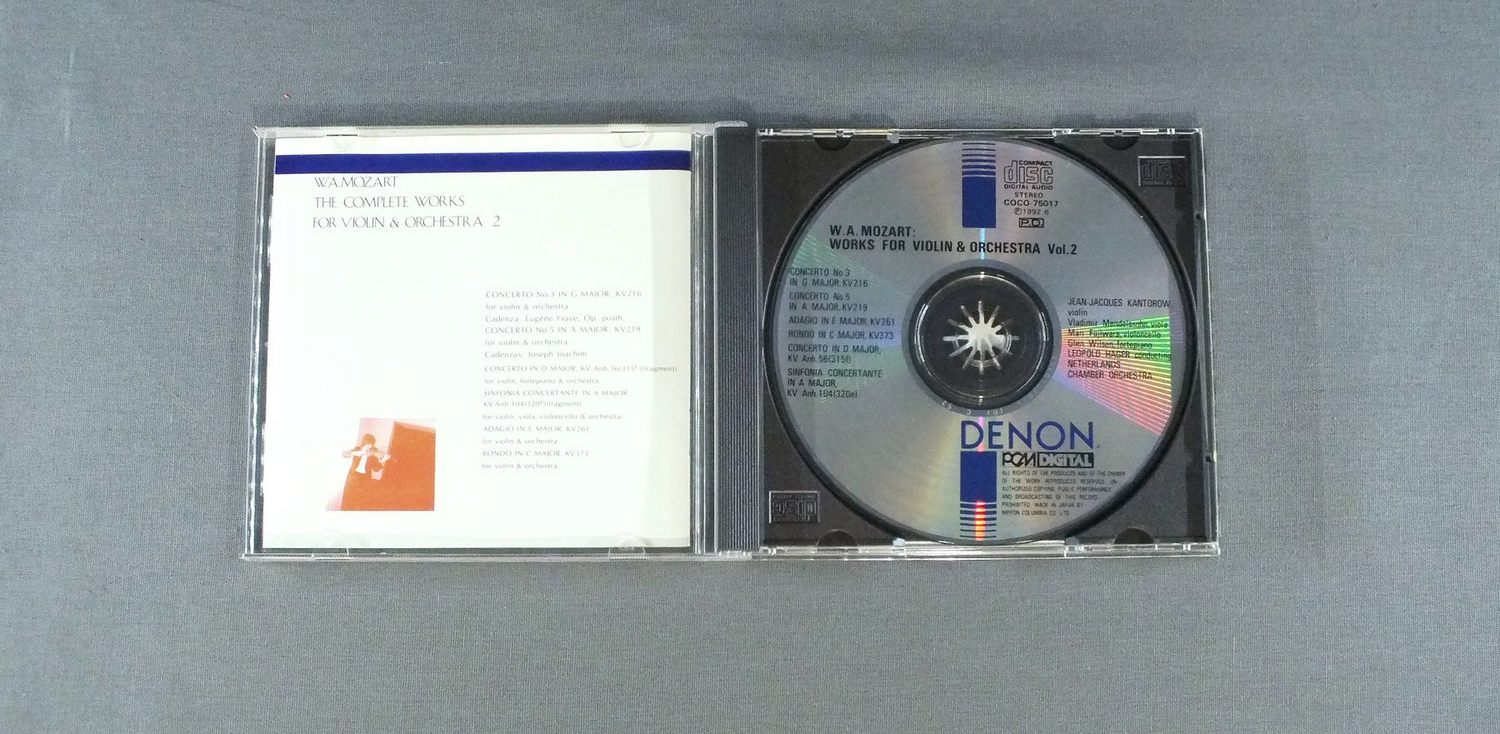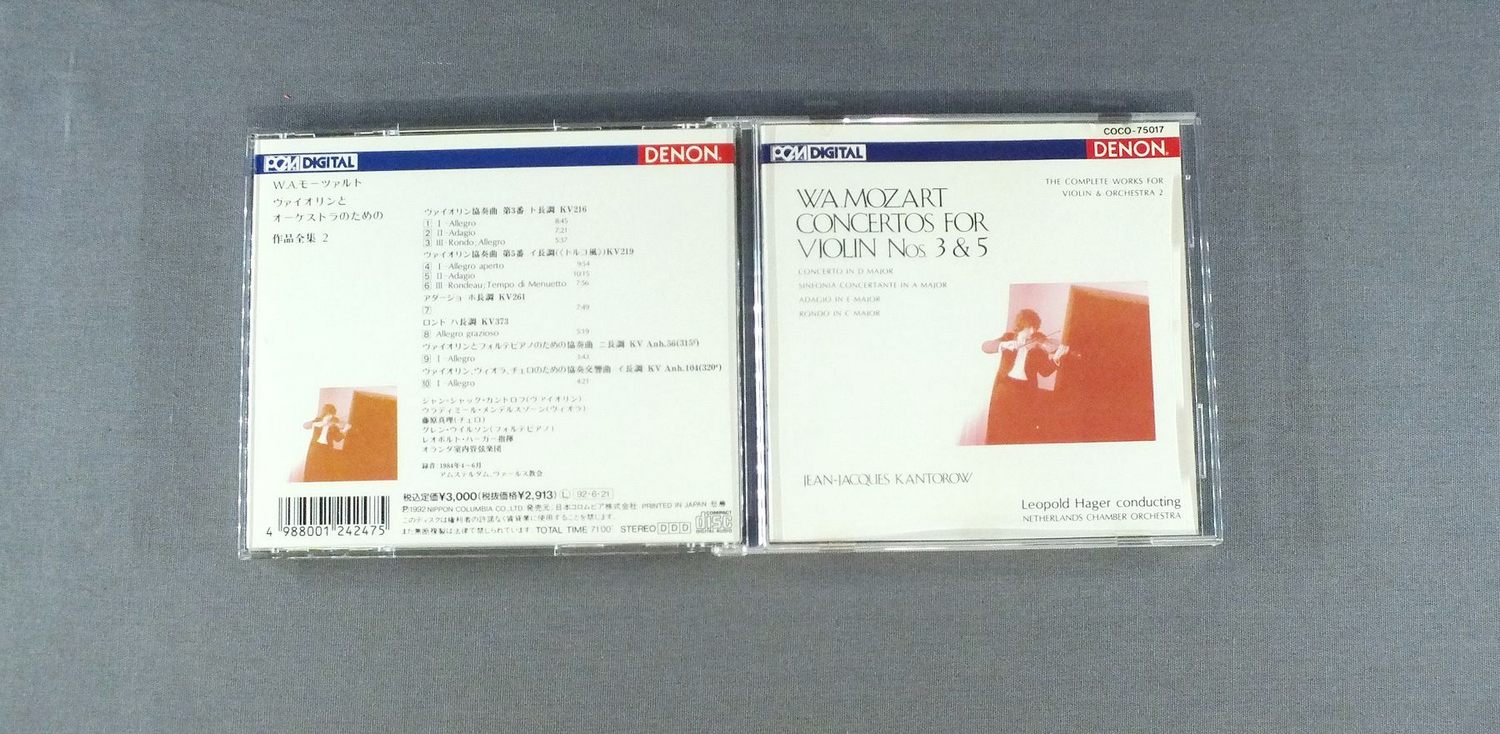 KANTOROW-HAGER etcカントロフ-ハーガー 他/MOZART-CONC. FOR VIOLIN NOS 3 & 5 etcモーツァルト-ヴァイオリン協奏曲 第3-5番 他 COCO75017 製造国:日本盤 / Media:CD外観:EX-盤の状態:EX 価格(税込):¥880 送料 7inch:定形外郵便 360円~LP:定形外郵便 660円~送料は、注文の最終画面で確認頂けます。 > > KANTOROW-HAGER etc/MOZART-CONC. FOR VIOLIN NOS 3 & 5 etc 外観 (EX-)特記事項:ブックレットに爪跡や薄いよごれ。外観EX-の共通説明:ダメージ軽度~多少。 中古品としては普通の状態。シミ、ヨゴレ、スレなど軽く~多少。 盤の状態 (EX)特記事項:薄いスリキズ・スレ軽くある感じ。軽微なものの様子です。盤EXの共通説明:盤面のスリキズが薄いものが少し~軽度 音に出そうなものは無いように見える(軽微なソフトティック音は除く)。 Tweet それぞれの画像をクリックすると、大きい写真が見られます こちらの商品もお勧めです 990円 DURUFLE - PRETRE - LA SOCIETE DES CONCERTS DU CONSERVATOIREデュリュフレ - プレートル - パリ音楽院管弦楽団 / SAINT SAENS - SYMPHONY NO.3サン・サーンス - 交響曲第3番 990円 BRENDEL - MARRTNER - ACADEMY OF ST.MARTIN IN THE FIELDSブレンデル - マリナー - アカデミー室内管弦楽団 / MOZRT - PIANO CONCERTOS NO19 NO23モーツァルト - ピアノ協奏曲第19番23番 2,750円 FURTWANGLER / WARGNER 5枚組 990円 JOCHUM - CONCERTGEBOUW ORCHESTRAヨッフム - アムステルダム・コンセルトヘボウ管弦楽団 / BEETHOVEN - SYMPHONY NO5ベートーヴェン - 交響曲第5番 運命 990円 KARAJAN - VIENNA PHILHARMONIC ORCHESTRAカラヤン - ウィーン・フィルハーモニー管弦楽団 / HOLST - THE PLANETSホルスト - 組曲惑星 1,540円 LAWRENCE FOSTER - HOUSTON SYMPHONY ORCHESTRAローレンス・フォスター - ヒューストン交響楽団 / PAUL CHIHARA - SYMPHONY IN CELEBRATIONポール・チハラ - SYMPHONY IN CELEBRATION 990円 WEISSSENBERG - GIULINI - WIENER SYMPHONYワイセンベルク - ジュリーニ - ウィーン交響楽団 / MOZART - PIANO CINCERTO NO.9モーツァルト - ピアノ協奏曲第9番 1,540円 BLASERVERINGUNG DER WIENER PHILHARMONIKERウィーンフィル吹奏楽団 / MOZART - SERENADENモーツアルト・セレナーデ集