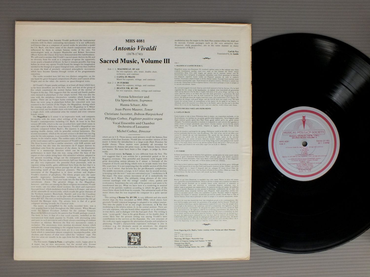MICHEL CORBOZ/VIVALDI-SACRED MUSIC VOLUME 3 MHS4081 製造国:米国盤 / Media:LP外観:EX盤の状態:EX+ 価格(税込):¥1,100(売約済) 送料 7inch:定形外郵便 360円~LP:定形外郵便 660円~送料は、注文の最終画面で確認頂けます。 > > MICHEL CORBOZ/VIVALDI-SACRED MUSIC VOLUME 3 外観 (EX)特記事項:特記なし。外観EXの共通説明:ダメージが限定的。中古品としては保存状態がよい方。シミ、ヨゴレ、スレ 少し~軽度。 盤の状態 (EX+)特記事項:薄いスリキズ・スレ少し。一見してきれいな状態です。盤EX+の共通説明:盤面の極薄いスリキズ、スレ少し程度 音に出そうなものは無いように見える(極軽微なソフトティック音は除く)。 Tweet それぞれの画像をクリックすると、大きい写真が見られます こちらの商品もお勧めです 1,980円 GUEDEN-LIPP-SIMONEAU-BOHME-BERRY-BOHM / MOZART-DIE ZAUBER 990円 FISCHER-DIESKAU - ESCHENBACH / SCHUMANN - LIEDER 3 LP BOX 990円 STEPP / MOZART BASTIEN AND BASTIENNE 1,650円 ANITA CERQUETTI / OPERATIC RECITAL 990円 SCHWARZKOPF / SCHWARZKOPF/OPERA ARIAS 1,320円 RICHARD TAUBER / GOLDEN VOICE SERIES 990円 ORMANDY / BACH BY THE PHILADELPHIA ORCH. 1,430円 SCHWARZKOPF / SONG RECITAL