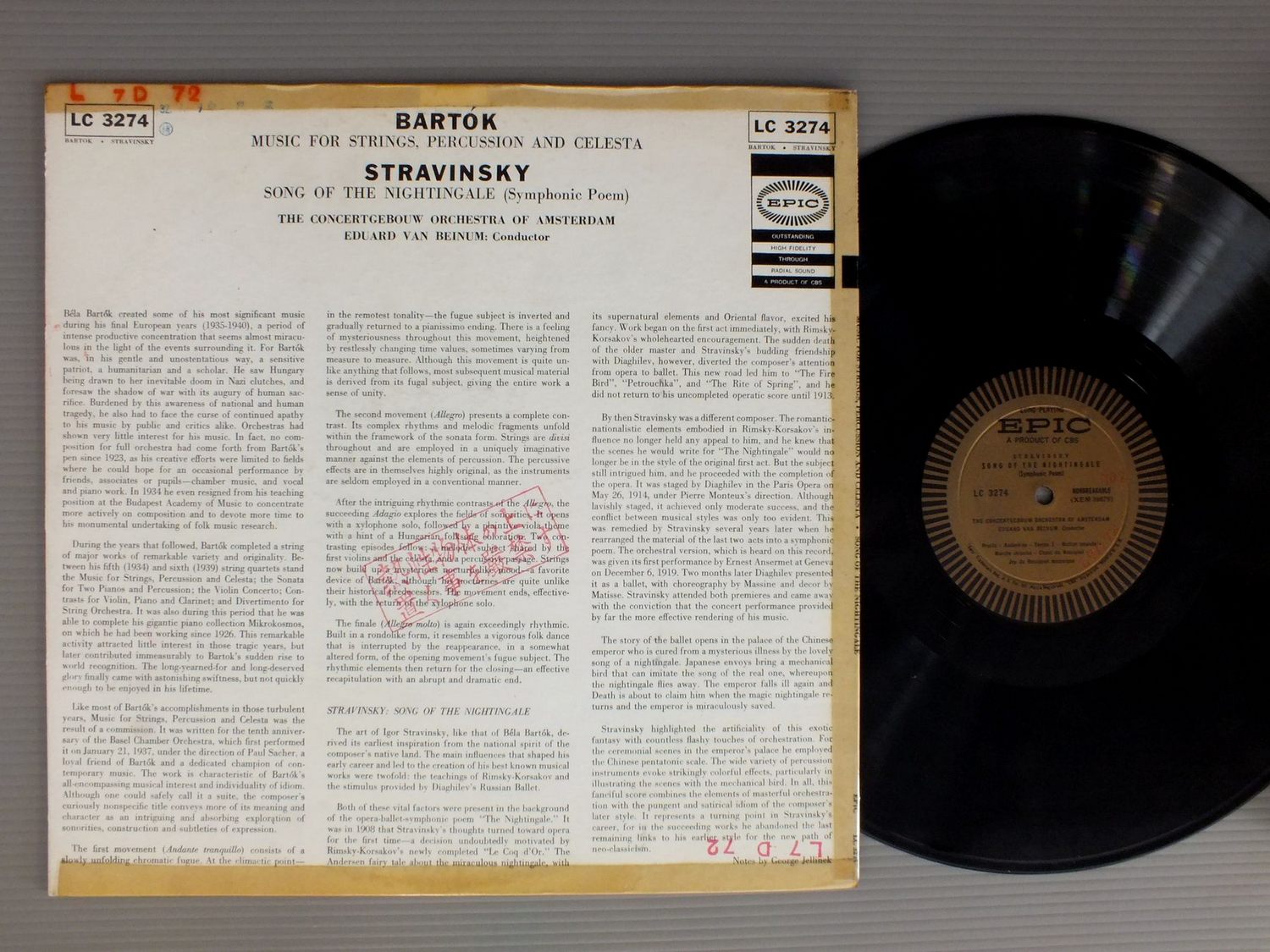 BEINUM/BARTOK&STRAVINSKY LC3274 製造国:米国盤 / Media:LP外観:VG盤の状態:EX 価格(税込):¥550(売約済) 送料 7inch:定形外郵便 360円~LP:定形外郵便 660円~送料は、注文の最終画面で確認頂けます。 > > BEINUM/BARTOK&STRAVINSKY 外観 (VG)特記事項:背やヘリにテープ。ステッカーやスタンプ有り。外観VGの共通説明:ダメージが見るからに多い。 盤の状態 (EX)特記事項:薄いスリキズ・スレ軽くある感じ。軽微なものの様子です。盤EXの共通説明:盤面のスリキズが薄いものが少し~軽度 音に出そうなものは無いように見える(軽微なソフトティック音は除く)。 Tweet それぞれの画像をクリックすると、大きい写真が見られます こちらの商品もお勧めです 1,430円 WILLI BOSKOVSKY / VIENNA CARNIVAL 990円 HANS ZANOTELLI-ALFRED SCHOLZ / WEBER-ROSSINI-SCHUMANN OVERTURES 990円 JOCHUM / BEETHOVEN SYM.S NOS1 & 8 990円 PAUL SACHER / ROUSSEL PETITE SUITE FOR ORCH.. 990円 ORMANDY / RAVEL-BOLERO-TOMBEAU-ALBORADA 1,650円 GIULINI / DVORAK-SYM. 990円 MUNCH / PISTON-SYM. NO6 1,650円 SARGENT / TCHAIKOVSKY SUITE