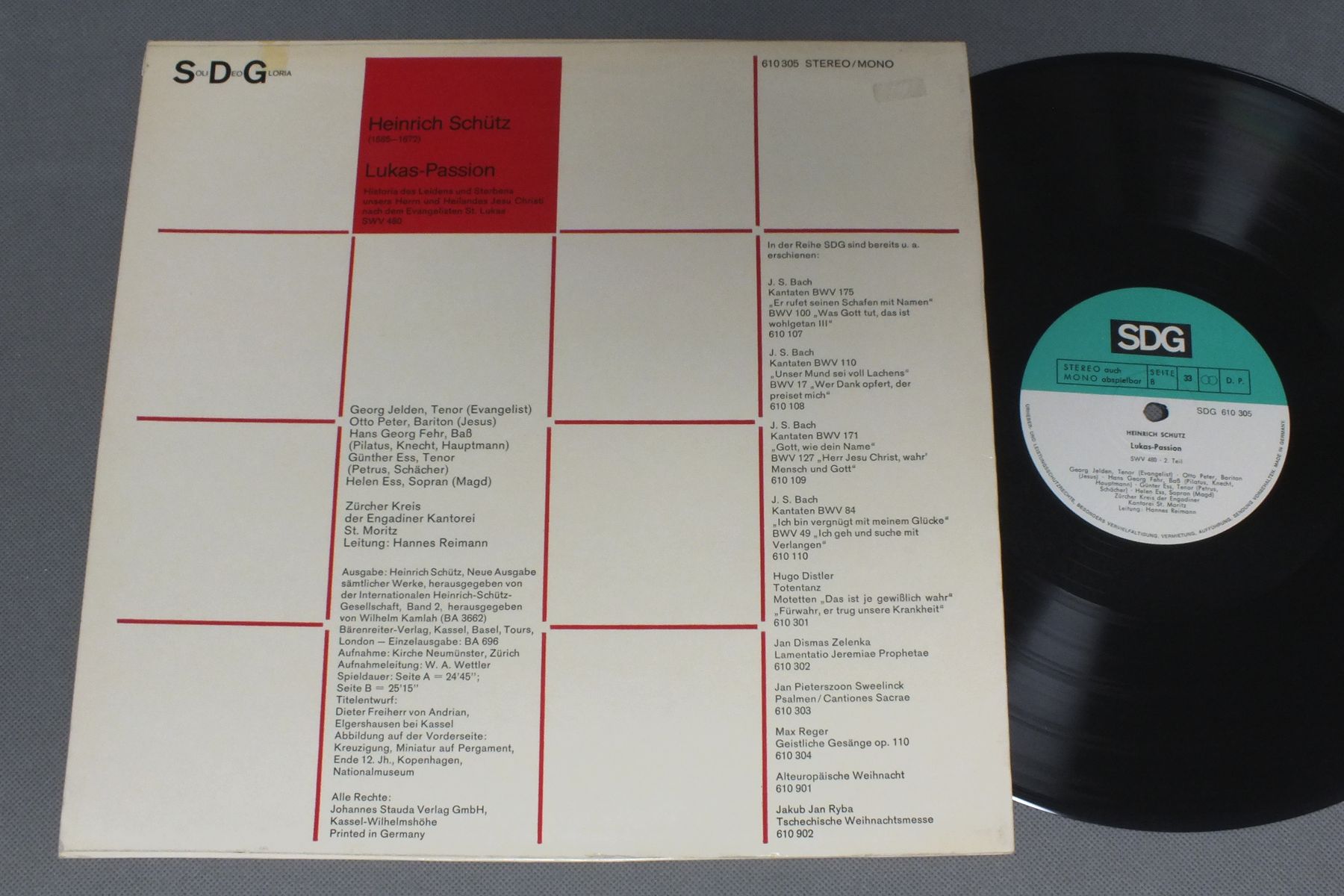 GEORG JELDEN/SCHUTZ LUKAS-PASSION SDG 610 305 製造国:独盤 / Media:LP外観:EX-盤の状態:EX+ 価格(税込):¥1,650(売約済) 送料 7inch:定形外郵便 360円~LP:定形外郵便 660円~送料は、注文の最終画面で確認頂けます。 > > GEORG JELDEN/SCHUTZ LUKAS-PASSION 外観 (EX-)特記事項:天抜けテープ補修。外観EX-の共通説明:ダメージ軽度~多少。 中古品としては普通の状態。シミ、ヨゴレ、スレなど軽く~多少。 盤の状態 (EX+)特記事項:薄いスリキズ・スレ少し。一見してきれいな状態です。盤EX+の共通説明:盤面の極薄いスリキズ、スレ少し程度 音に出そうなものは無いように見える(極軽微なソフトティック音は除く)。 Tweet それぞれの画像をクリックすると、大きい写真が見られます こちらの商品もお勧めです 990円 SCHWARZKOPF-FISCHER / MAHLER-DES KNABEN WUNDERHORN 880円 JOHN WUSTMAN / FRENCH OPERA ARIAS 990円 VON STADE - DE ALMEIDA - ROYAL PHILHARMONIC ORCHESTRA / CANTELOUBE - CHANTS D`AUVERGNEカントルーブ - オーヴェルニュの歌 1,540円 PAVAROTTI & FRENI / ROSSINI - PETTE MESSE SOLENNELLE 990円 MARIA CHIARA / SOPRANO ARIAS FROM ITALIAN OPERA 880円 BERNARD LONDON CHAMBER SINGERS / PURCELL INDIAN QUEEN 1,320円 MONTEROSSO / FROTTOLE:WORKS BY MANTOVANO/CARA ETC 1,980円 ROBERTA ALEXANDER / R. STRAUSS LIEDER