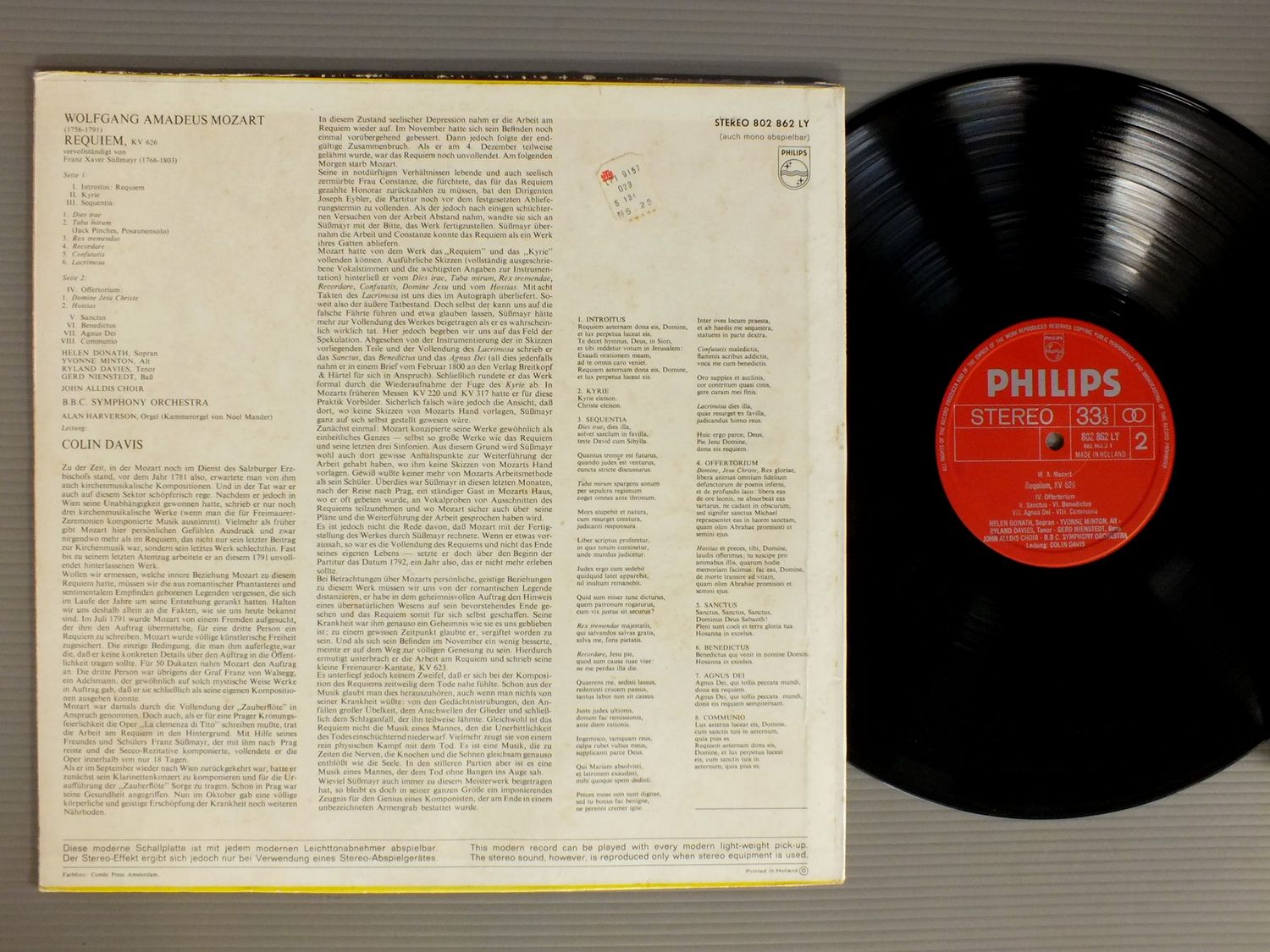COLIN DAVIS/MOZART-REQUIEM 802 862LY 製造国:オランダ盤 / Media:LP外観:EX-盤の状態:EX 価格(税込):¥2,200(売約済) 送料 7inch:定形外郵便 360円~LP:定形外郵便 660円~送料は、注文の最終画面で確認頂けます。 > > COLIN DAVIS/MOZART-REQUIEM 外観 (EX-)特記事項:ジャケ表面にシミやよごれ有り。外観EX-の共通説明:ダメージ軽度~多少。 中古品としては普通の状態。シミ、ヨゴレ、スレなど軽く~多少。 盤の状態 (EX)特記事項:薄いスリキズ・スレ軽くある感じ。軽微なものの様子です。盤EXの共通説明:盤面のスリキズが薄いものが少し~軽度 音に出そうなものは無いように見える(軽微なソフトティック音は除く)。 Tweet それぞれの画像をクリックすると、大きい写真が見られます こちらの商品もお勧めです 990円 STEPP / MOZART BASTIEN AND BASTIENNE 990円 GERALD MOORE / FABULOUS VICTORIA DE LOS ANGELES 1,430円 JANET BAKER / BRAHMS-WAGNER-STRAUSS 990円 SANTINI / PUCCINI-MADAME BUTERFLY HIGHLIGHTS 2,090円 JOAN SUTHERLAND / WORLD OF JOAN SUTHERLAND 990円 FRITZ BUSCH / MOZART-DON GIOVANNI 3LP BOX 1,430円 SCHWARZKOPF / MOZART OPERA ARIAS 990円 SIGRID ONEGINシグリッド・オネーギン / Lebendige Vergangenheit