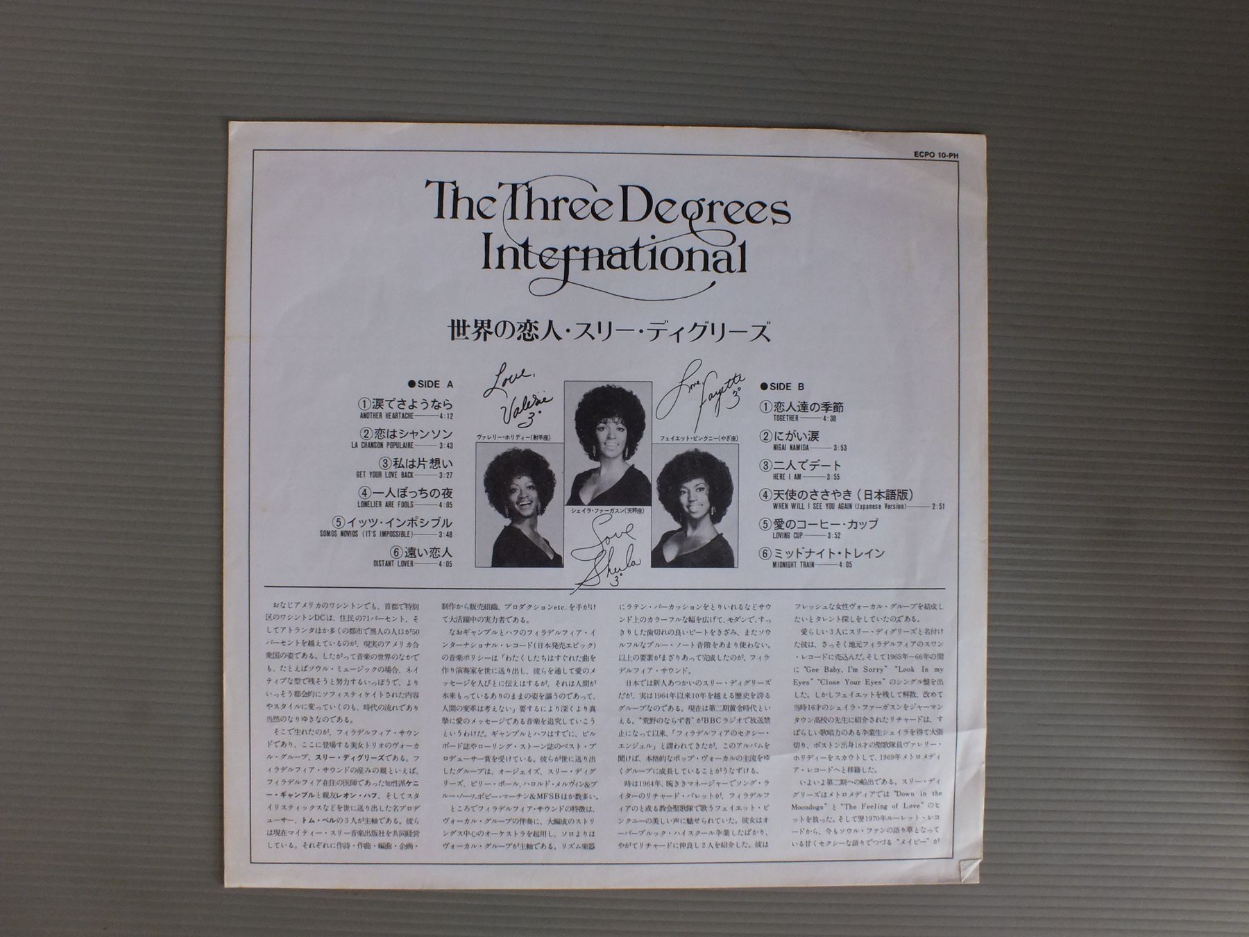 THREE DEGREESスリー・ディグリーズ/INTERNATIONAL THREE DEGREES世界の恋人・スリー・ディグリーズ ECPO10PH 製造国:日本盤 / Media:LP外観:EX盤の状態:EX帯:EX 価格(税込):¥880 送料 7inch:定形外郵便 360円~LP:定形外郵便 660円~送料は、注文の最終画面で確認頂けます。 > > THREE DEGREES/INTERNATIONAL THREE DEGREES 外観 (EX)特記事項:ジャケ表面にシミやよごれ有り。外観EXの共通説明:ダメージが限定的。中古品としては保存状態がよい方。シミ、ヨゴレ、スレ 少し~軽度。 盤の状態 (EX)特記事項:薄いスリキズ・スレ軽くある感じ。軽微なものの様子です。盤EXの共通説明:盤面のスリキズが薄いものが少し~軽度 音に出そうなものは無いように見える(軽微なソフトティック音は除く)。 帯の状態 (EX):特記なし。 Tweet それぞれの画像をクリックすると、大きい写真が見られます こちらの商品もお勧めです 1,320円 GRAND MASTER FLASHグランド・マスター・フラッシュ / THEY SAID IT COULDN`T BE DONEサイン・オブ・ザ・タイムス 1,210円 TEMPTATIONSテンプテーションズ / BACK TO BASICSバック・トゥー・ベイシックス 1,210円 ROBERTA FLACKロバータ・フラック / I`M THE ONEアイム・ザ・ワン 660円 WHISPERSウィスパーズ / SO GOODソー・グッド 1,210円 VAN MCCOYヴァン・マッコイ / RHYTHMS OF WORLDリズム・オブ・ザ・ワールド 880円 DIANA ROSSダイアナ・ロス / LIVE AT CAESARS PALACEライブ・アット・シーザース・パレス 660円 GLADYS KNIGHT & THE PIPSグラディス・ナイト&ザ・ピップス / IMAGINATIONイマジネイション 1,320円 CAROL DOUGLASキャロル・ダグラス / CAROL DOUGLAS ALBUM恋の診断書-恋のハリケーン