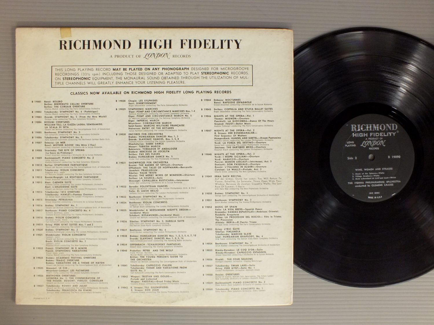 CLEMENS KRAUSS/WINE. WOMEN&STRAUSS B19090 製造国:米国盤 / Media:LP外観:VG+盤の状態:EX 価格(税込):¥578(売約済) 送料 7inch:定形外郵便 360円~LP:定形外郵便 660円~送料は、注文の最終画面で確認頂けます。 > > CLEMENS KRAUSS/WINE. WOMEN&STRAUSS 外観 (VG+)特記事項:ジャケ表面におごれ有り。裏ジャケにテープ。外観VG+の共通説明:ダメージやや有り。シミ、ヨゴレ、スレなど多少~やや多め。 盤の状態 (EX)特記事項:薄いスリキズ・スレ軽くある感じ。軽微なものの様子です。盤EXの共通説明:盤面のスリキズが薄いものが少し~軽度 音に出そうなものは無いように見える(軽微なソフトティック音は除く)。 Tweet それぞれの画像をクリックすると、大きい写真が見られます こちらの商品もお勧めです 1,980円 ACKERMANアッカーマン / J.STRAUSS WIENER BLUT GESAMTAUFNAHME 990円 TOSCANINI - NBC SYM. ORCH. / PROKOFIEV - SYMPHONY NO 1 990円 MAREK JANOWSKI / WAGNER DAS RHEINGOLD 990円 MUNCH / WAGNER-TANNHAUSER OVERTURE&VIENUSLEOG MUSIC 1,320円 PAUMGARTNER / MOZART EINE KLEINE NACHTMUSIK-SYM. NR40 1,650円 MAAZEL / OVERTUREN HI-FI IN VOL3 990円 STRAUSS-ORCHESTRE DE LIEGEシュトラウス-リェ-ジュ管弦楽団 / FRANCK PSYCHEフランク 交響詩`プシュケ` 1,320円 SOLTI / SOLTI CHICAGO SHOWCASE
