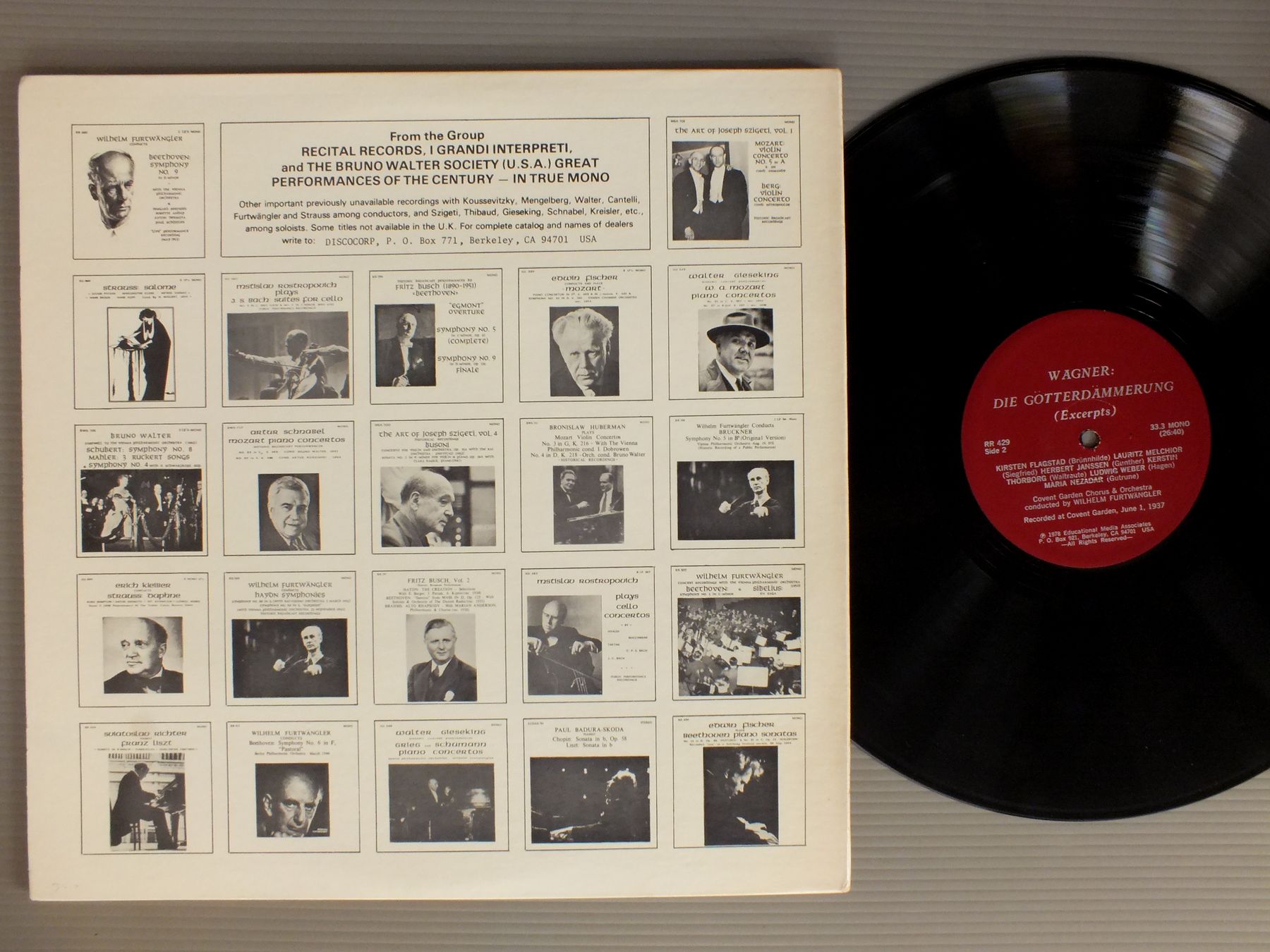 FURTWANGLER/WAGNER`S DIE GOTTERDAMMERUNG COVENT GARDEN. 1937 RR429 製造国:米国盤 / Media:LP外観:EX盤の状態:EX+ 価格(税込):¥1,155(売約済) 送料 7inch:定形外郵便 360円~LP:定形外郵便 660円~送料は、注文の最終画面で確認頂けます。 > > FURTWANGLER/WAGNER`S DIE GOTTERDAMMERUNG COVENT GARDEN. 1937 外観 (EX)特記事項:背スレ有り。外観EXの共通説明:ダメージが限定的。中古品としては保存状態がよい方。シミ、ヨゴレ、スレ 少し~軽度。 盤の状態 (EX+)特記事項:薄いスリキズ・スレ少し。一見してきれいな状態です。盤EX+の共通説明:盤面の極薄いスリキズ、スレ少し程度 音に出そうなものは無いように見える(極軽微なソフトティック音は除く)。 Tweet それぞれの画像をクリックすると、大きい写真が見られます こちらの商品もお勧めです 1,320円 SKODA-SCHERCHEN / BEETHOVEN CONC. NO1 FOR PIANO 1,650円 GIBSON / LAND OF THE MOUNTAIN & FLOOD 990円 HAITINK / BRUCKNER SINFONIA N4 4,950円 FURTWANGLER-FISCHER / BRAHMS PIANO CONC. NO2 1,650円 FISCHER-FURTWANGLER / BEETHOVEN-KLAVIERKONZERT 990円 ENDRE WOLF-ANTHONY COLLINS / BRAHMS-VIOLIN CONC. 1,650円 MARTINON / SHOSTAKOVICH-SYM. NO1-AGE OF GOLD 990円 GERHARD PFLUGER / DVORAK-NEW WORLD SYM.
