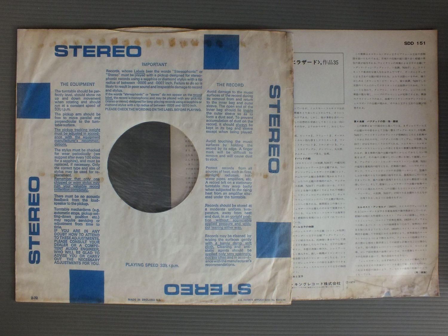 ANSERMETアンセルメ/RIMSKY-KORSAKOV-SCHEHERAZADEリムスキー・コルサコフ-交響組曲 シェエラザード SDD151 製造国:英国盤 / Media:LP外観:VG+盤の状態:EX 価格(税込):¥1,650(売約済) 送料 7inch:定形外郵便 360円~LP:定形外郵便 660円~送料は、注文の最終画面で確認頂けます。 > > ANSERMET/RIMSKY-KORSAKOV-SCHEHERAZADE 外観 (VG+)特記事項:ジャケ表面によごれやシミ。裏ジャケにテープ有。外観VG+の共通説明:ダメージやや有り。シミ、ヨゴレ、スレなど多少~やや多め。 盤の状態 (EX)特記事項:薄いスリキズ・スレ軽くある感じ。軽微なものの様子です。盤EXの共通説明:盤面のスリキズが薄いものが少し~軽度 音に出そうなものは無いように見える(軽微なソフトティック音は除く)。 Tweet それぞれの画像をクリックすると、大きい写真が見られます こちらの商品もお勧めです 990円 JOCHUM / BEETHOVEN SYM. NO2 OVERTURE `LEONORE` NO2 990円 BOHM / BRUCKNER SYM. NO3 1,650円 KARAJAN / SIBELIUS-SYM. NO2 990円 REMOORTELルモーテル / BEETHOVEN-12 GERMAN DANCES 990円 BARBIROLLI / ELGAR-SYM. NO1 990円 LEINSDORF / TOWLE-INTERPRETS DEBUSSY 990円 LEON ESCALAIS / ART OF BEL CANTO 990円 GALLIERA / BORODIN SYM. NO1