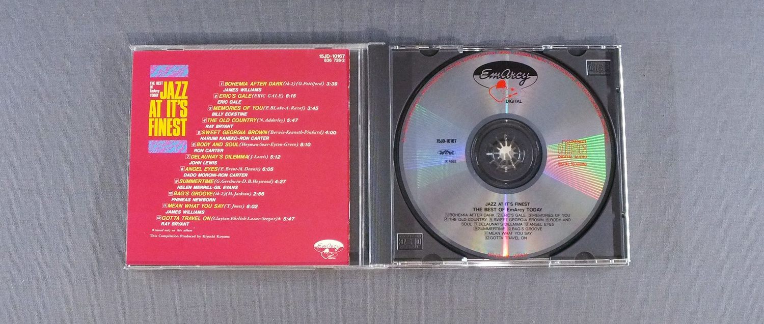 EMACY LABEL JAZZ ARTISTSエマーシー・レーベル/JAZZ AT ITS FINEST-THE BEST OF EMACY TODAYベスト・オブ・エマーシー・トゥデイ 15JD 10167 製造国:日本盤 / Media:CD外観:EX盤の状態:EX 価格(税込):¥1,100 送料 7inch:定形外郵便 360円~LP:定形外郵便 660円~送料は、注文の最終画面で確認頂けます。 > > EMACY LABEL JAZZ ARTISTS/JAZZ AT ITS FINEST-THE BEST OF EMACY TODAY 外観 (EX)特記事項:特記事項無し。コンディションリストを参照。外観EXの共通説明:ダメージが限定的。中古品としては保存状態がよい方。シミ、ヨゴレ、スレ 少し~軽度。 盤の状態 (EX)特記事項:薄いスリキズ・スレ軽くある感じ。軽微なものの様子です。盤EXの共通説明:盤面のスリキズが薄いものが少し~軽度 音に出そうなものは無いように見える(軽微なソフトティック音は除く)。 Tweet それぞれの画像をクリックすると、大きい写真が見られます こちらの商品もお勧めです 2,200円 MARC LEVIN AND HIS FREE UNIT / DRAGON SUITE 1,650円 TOSHIYUKI HONDA本田俊之 / SHANGRI-LAシャングリア(楽園)