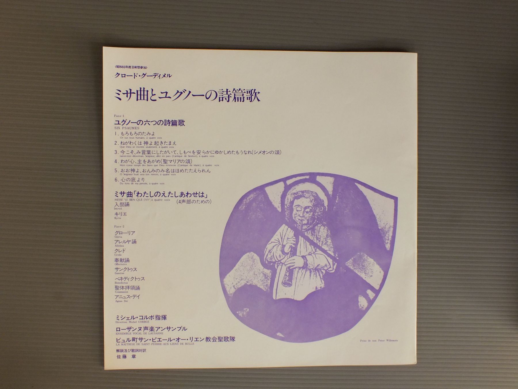 MICHEL CORBOZ etcミシェル・コルボ 他/GOUDIMEL-PSAUMESグーディメル-ミサ曲とユグノーの詩篇歌 ERX2152 製造国:日本盤 / Media:LP外観:EX盤の状態:EX+帯:EX- 価格(税込):¥990 送料 7inch:定形外郵便 360円~LP:定形外郵便 660円~送料は、注文の最終画面で確認頂けます。 > > MICHEL CORBOZ etc/GOUDIMEL-PSAUMES 外観 (EX)特記事項:特記なし。外観EXの共通説明:ダメージが限定的。中古品としては保存状態がよい方。シミ、ヨゴレ、スレ 少し~軽度。 盤の状態 (EX+)特記事項:薄いスリキズ・スレ少し。一見してきれいな状態です。盤EX+の共通説明:盤面の極薄いスリキズ、スレ少し程度 音に出そうなものは無いように見える(極軽微なソフトティック音は除く)。 帯の状態 (EX-):切れやヨレ有り。 Tweet それぞれの画像をクリックすると、大きい写真が見られます こちらの商品もお勧めです 990円 WOLFSBURGER CHORGEMEINSHAFT - ROYAL MALE CHOIRヴォルフスブルグ合唱団 - ロイヤル男声合唱団 / AVE MARIA-CHORAL FAVORITESアヴェ・マリア合唱名曲集 990円 RASKIN-ORMANDYラスキン-オーマンディ / BEETHOVEN-CHRIST ON THE MOUNTベートーヴェン-オラトリオ 橄欖山上のキリスト 990円 ROBERT SHAWロバート・ショウ / STEPHEN FOSTER SONG BOOKフォスター歌曲集 990円 YELENA OBRAZTSOVA M.ERMLERエレーナ・オブラスツォワ マルク・エルムレル / OBRAZTSOVA RECITALオブラスツォーワ・リサイタル 990円 MARIAN ANDERSONマリアン・アンダースン / SINGS NEGRO SPIRITUALS永遠の黒人霊歌集 990円 HANS HOTTERハンス・ホッタ― / SCHUBERT - SCHWANENGESANGシューベルト - 歌曲集 白鳥の歌 1,980円 YUKO SHIMADA島田祐子 / SINGS JAPANESE SONGS日本の歌をうたう 990円 FISCHER-DIESKAUフィッシャー・ディスカウ / BEST OF SCHUBERT LIEDERシューベルト歌曲のすべて